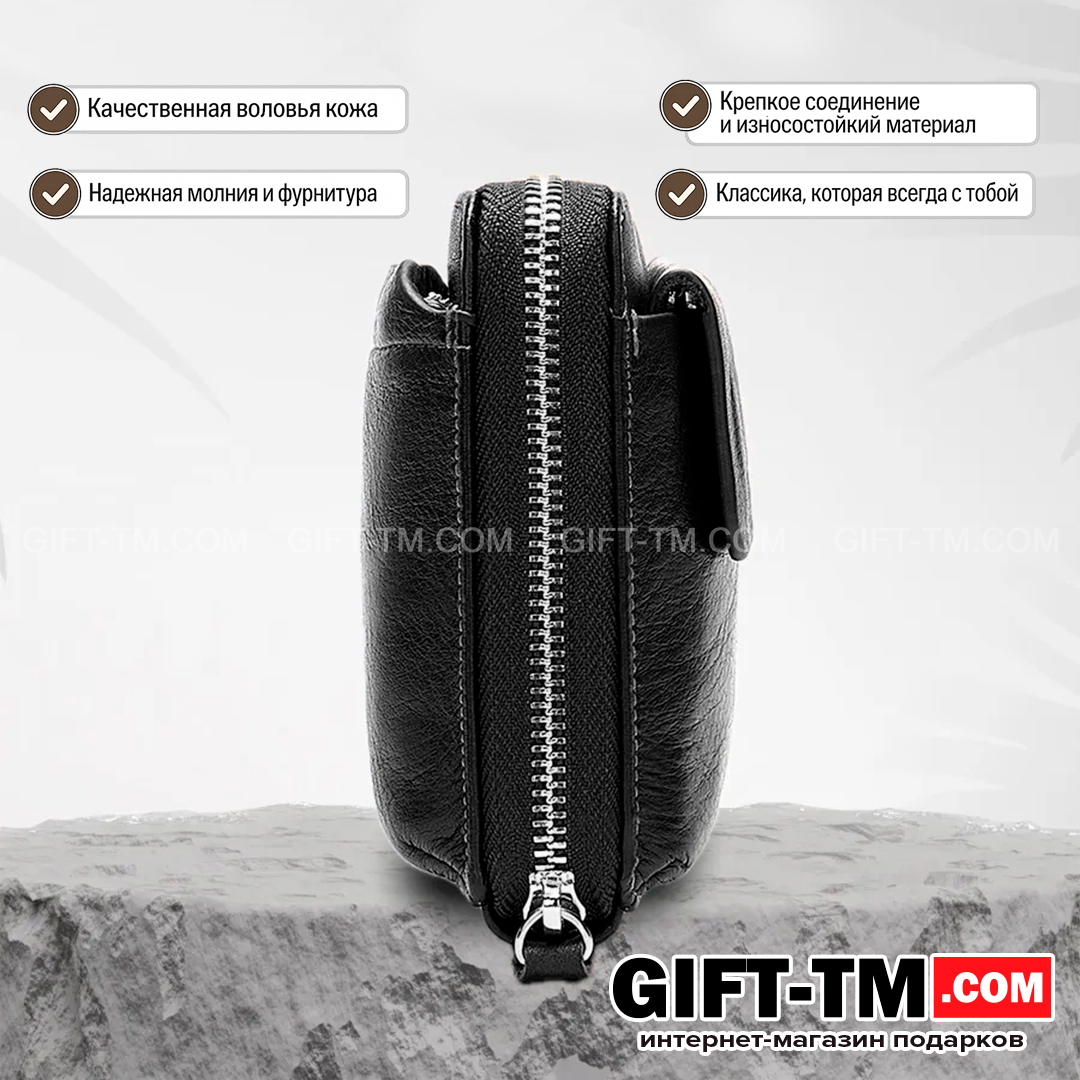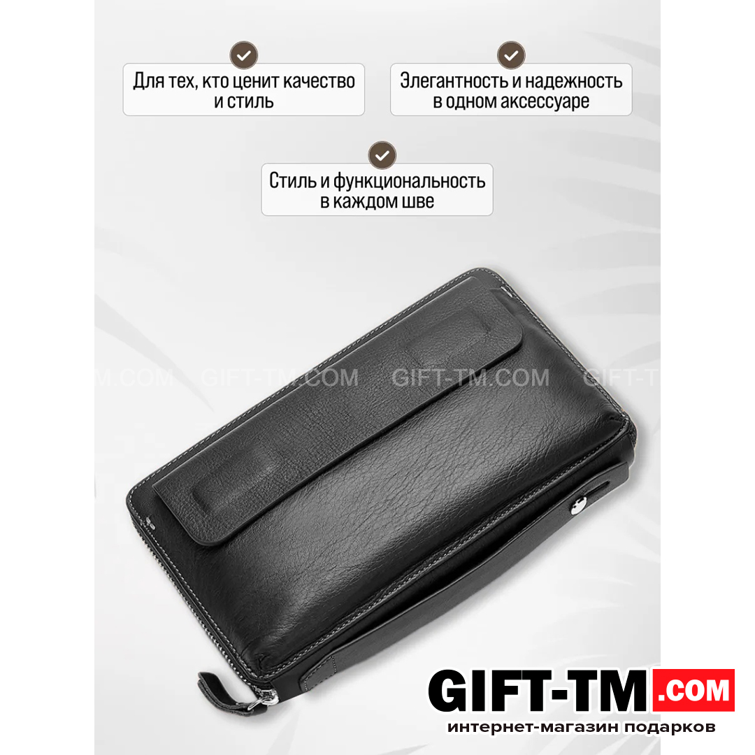 Мужской клатч-кошелек черного цвета — практичный и стильный аксессуар для мужчин, которые ценят порядок, удобство и классический дизайн. Портмоне выполнено из натуральной воловьей кожи, отличается прочностью, износостойкостью и приятной текстурой. Такой аксессуар подходит для повседневного использования, работы и поездок.