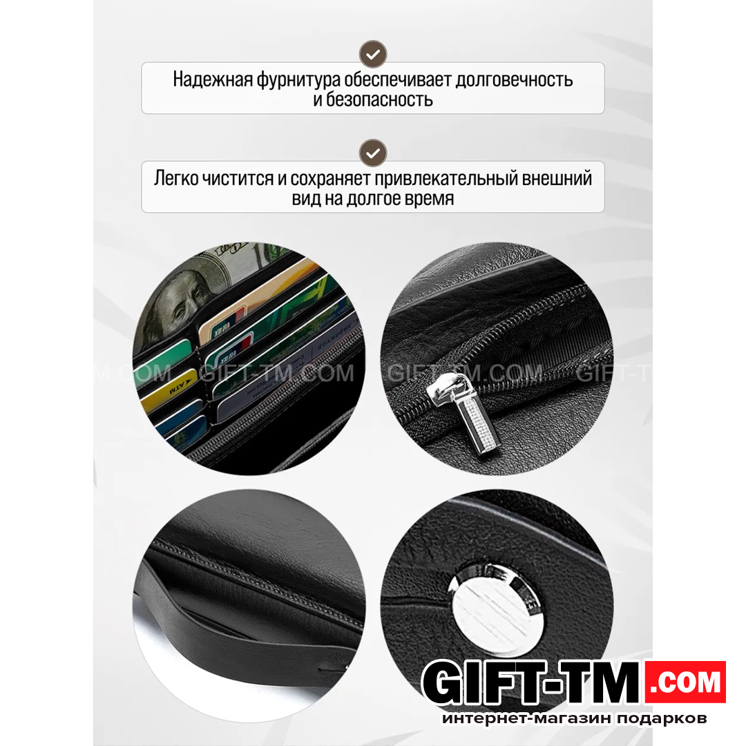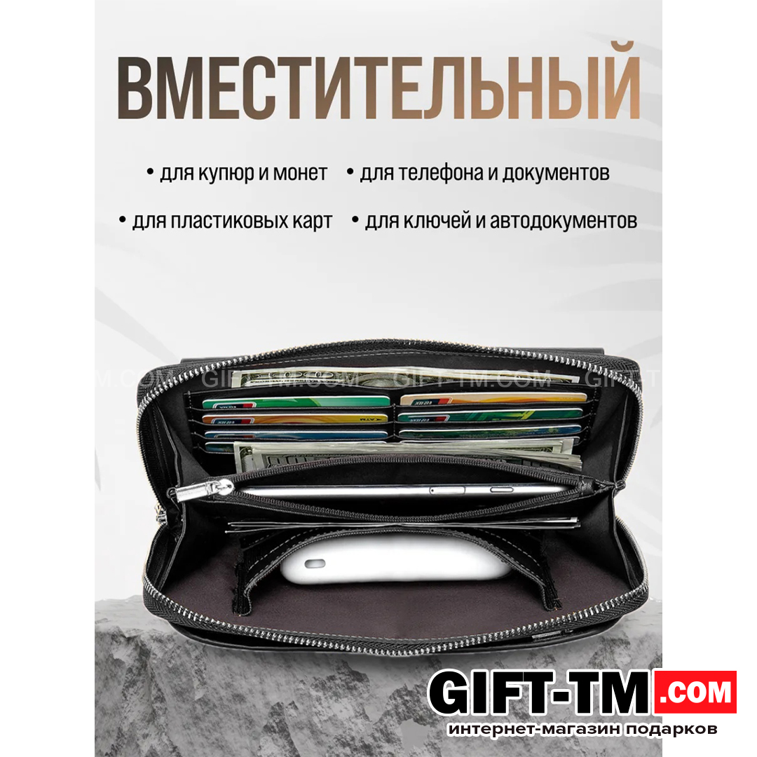 Портмоне поставляется в подарочной коробке и станет отличным вариантом подарка мужчине любого возраста — для папы, мужа, друга, сына, коллеги или начальника.