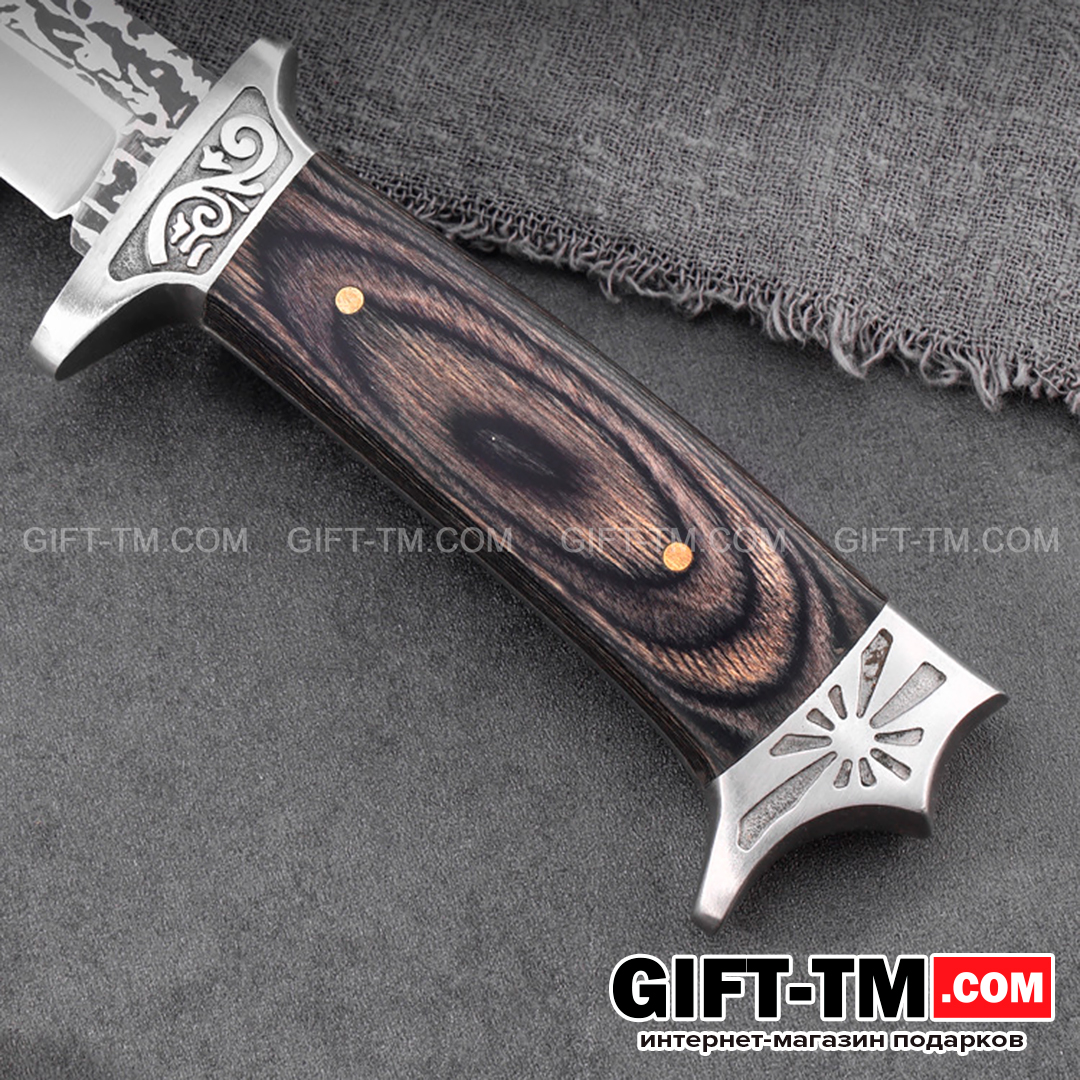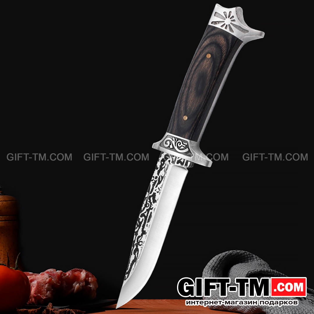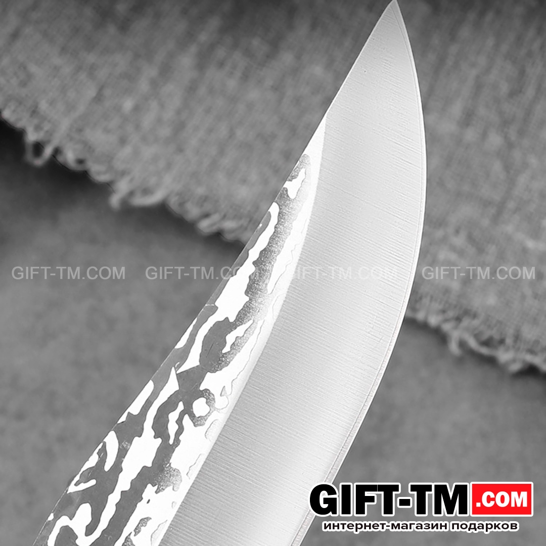 Клинок выполнен из стали 4Cr13, которая отличается устойчивостью к износу и хорошо держит заточку. Толщина клинка обеспечивает баланс между прочностью и удобством реза. Рукоять изготовлена из древесины, приятной на ощупь и устойчивой к эксплуатации.
