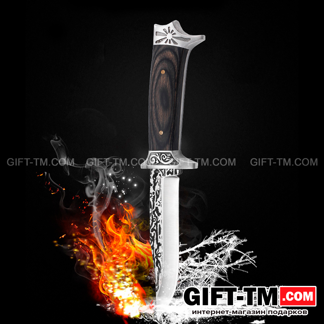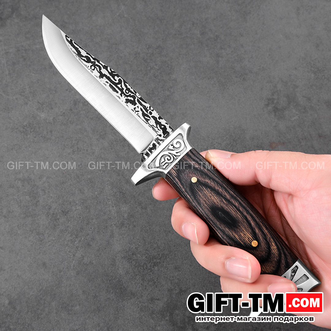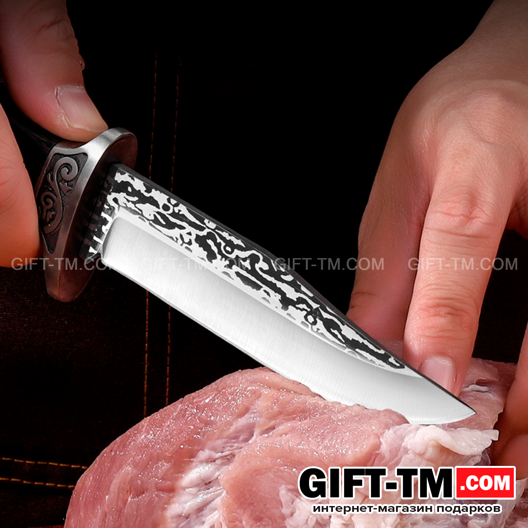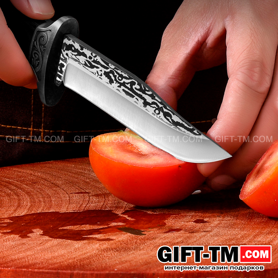 Клинок выполнен из стали 4Cr13, которая отличается устойчивостью к износу и хорошо держит заточку. Толщина клинка обеспечивает баланс между прочностью и удобством реза. Рукоять изготовлена из древесины, приятной на ощупь и устойчивой к эксплуатации.