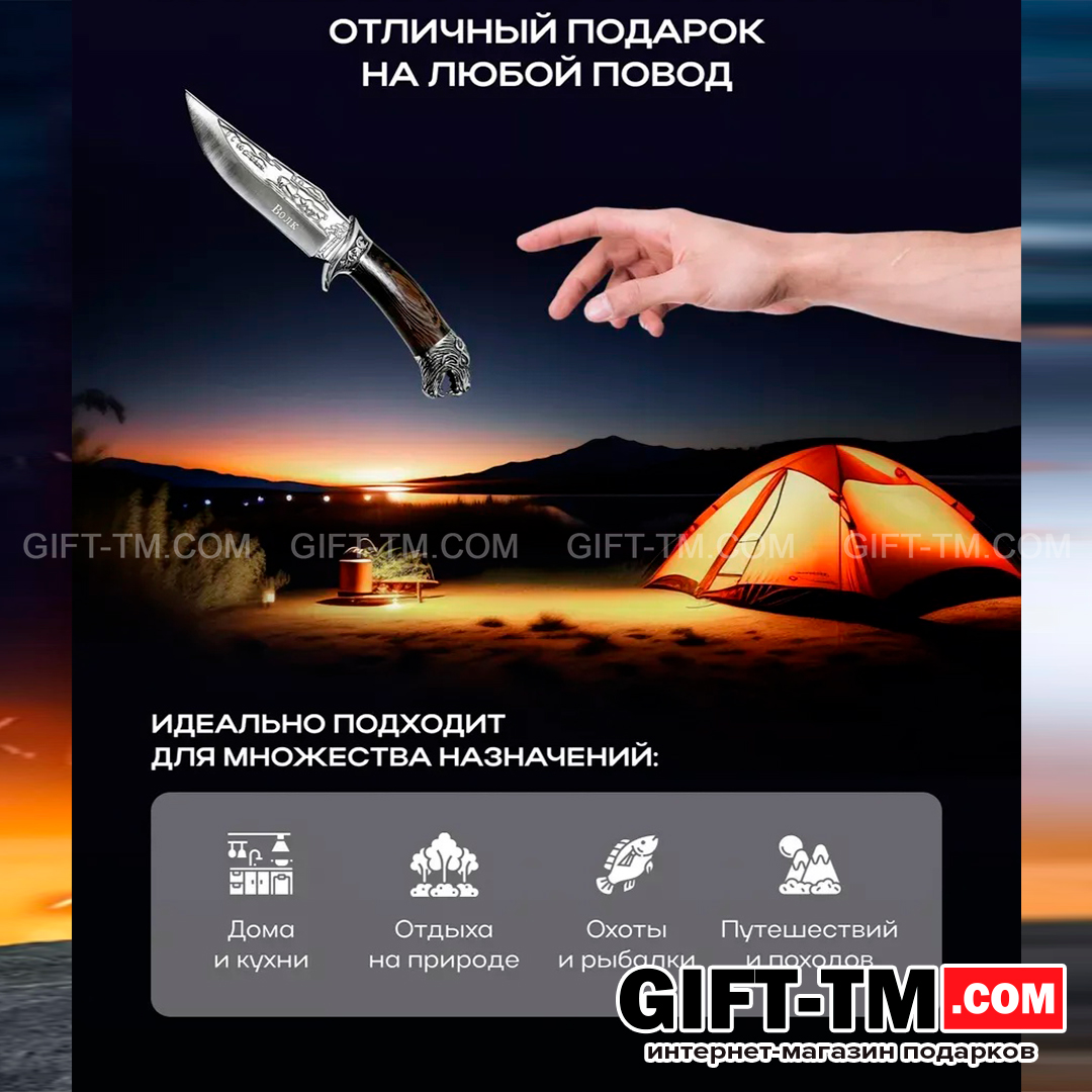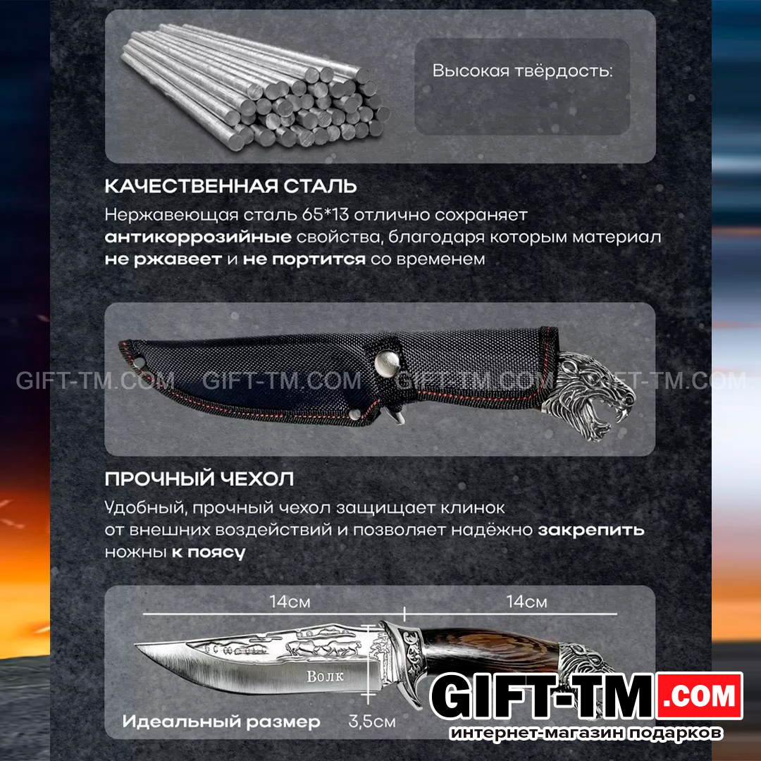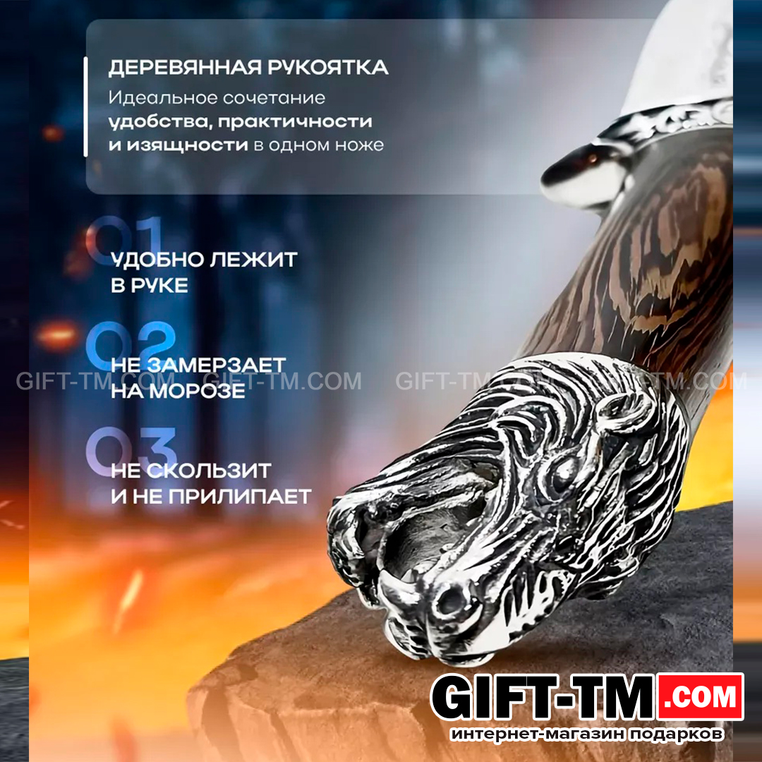«Голова волка» станет отличным выбором для туристов, охотников, рыбаков и прекрасным подарком для мужчин, ценящих силу, стиль и надёжность.