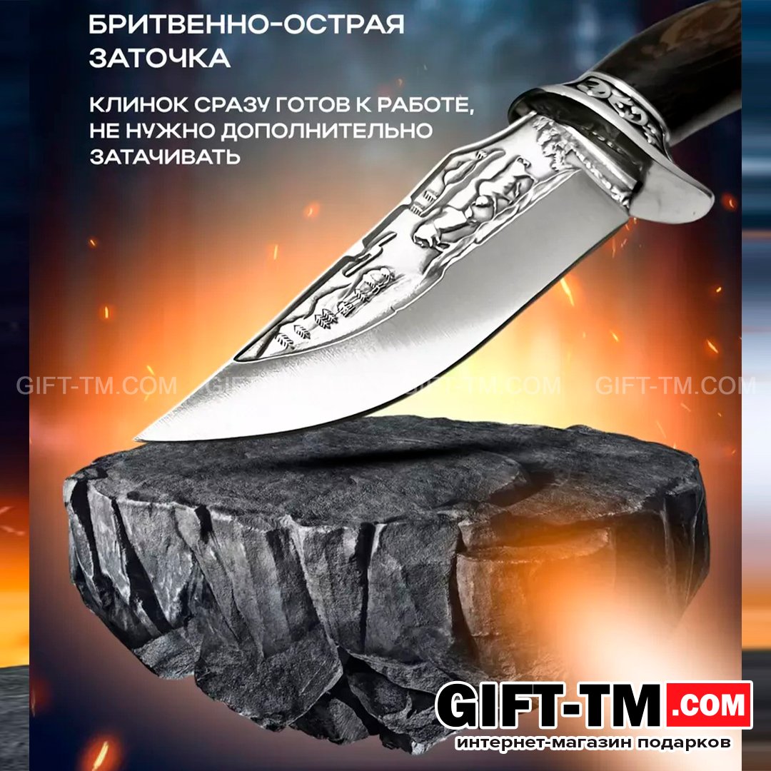 Эргономичная рукоять удобно лежит в руке, не скользит и не замерзает на морозе, обеспечивая комфортное и безопасное использование. Нож комплектуется прочным чехлом, который защищает клинок и позволяет носить его на поясе.