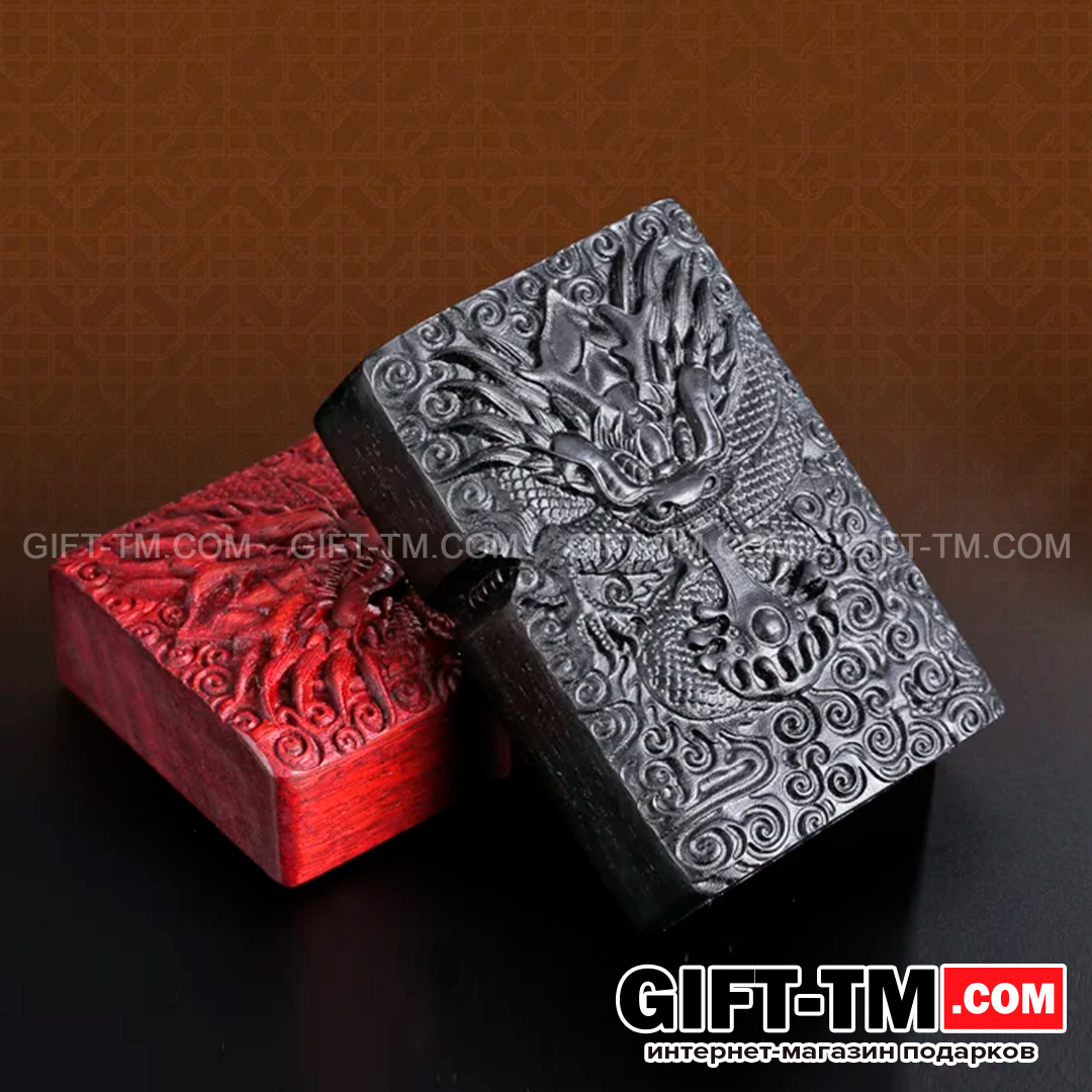 Зажигалка бензиновая «Дракон Chief» — премиальный аксессуар, сочетающий изысканный дизайн и символику силы. Корпус выполнен из натурального чёрного дерева с детальной объёмной резьбой в виде дракона — древнего символа удачи, власти и защиты. Эта зажигалка станет достойным подарком для мужчины, ценящего качество и стиль.