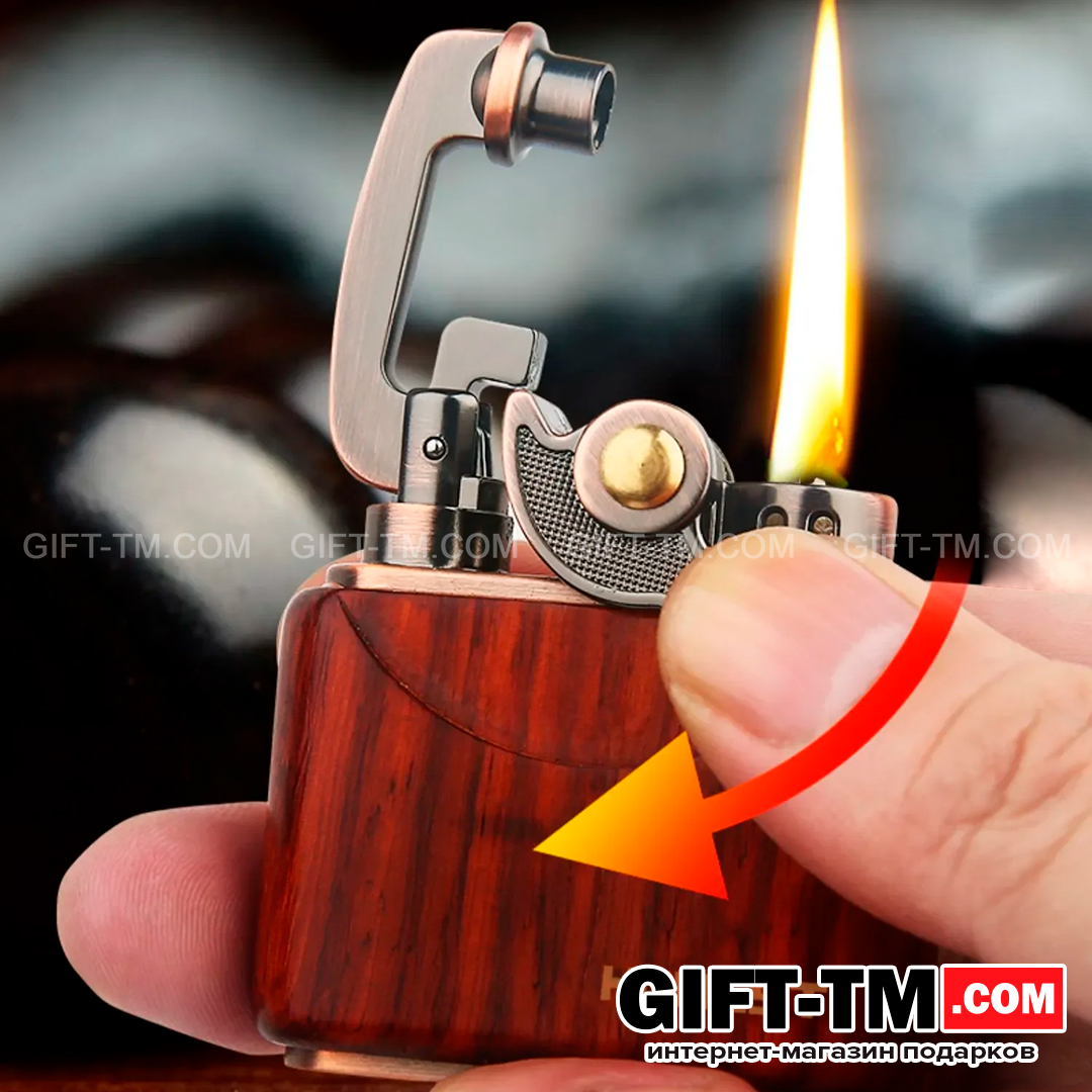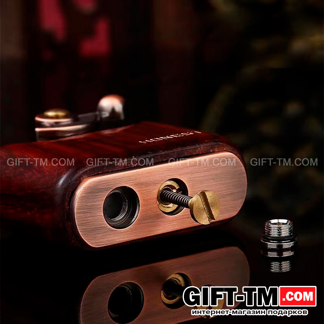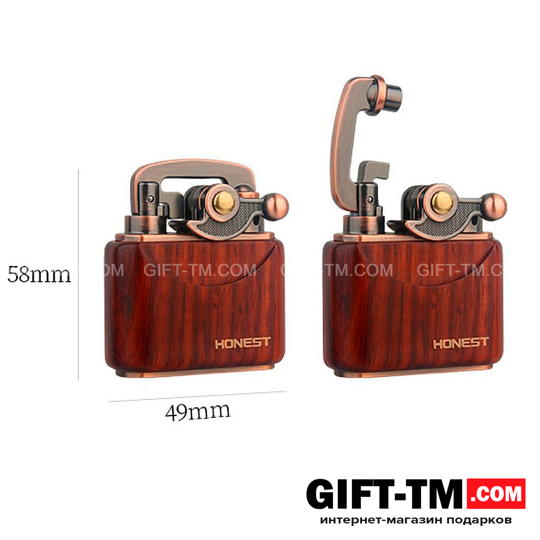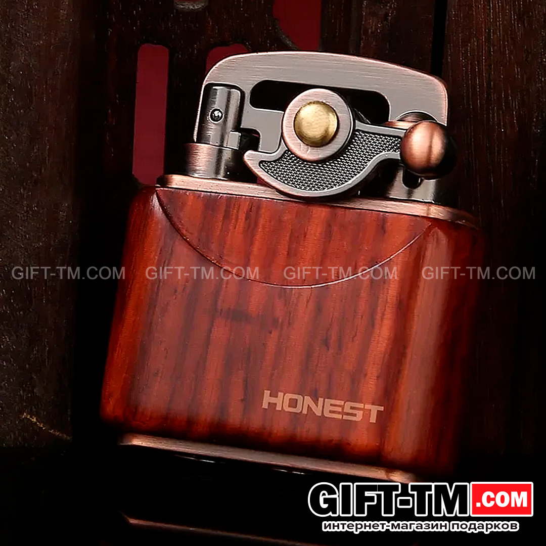 Бензиновая зажигалка HONEST — стильный и надёжный аксессуар с корпусом из металла и отделкой из натурального сандалового дерева. Механизм поджига работает с помощью поворота рычажка: при нажатии автоматически открывается крышка, после чего достаточно отпустить рычажок, чтобы высечь искры и поджечь фитиль.