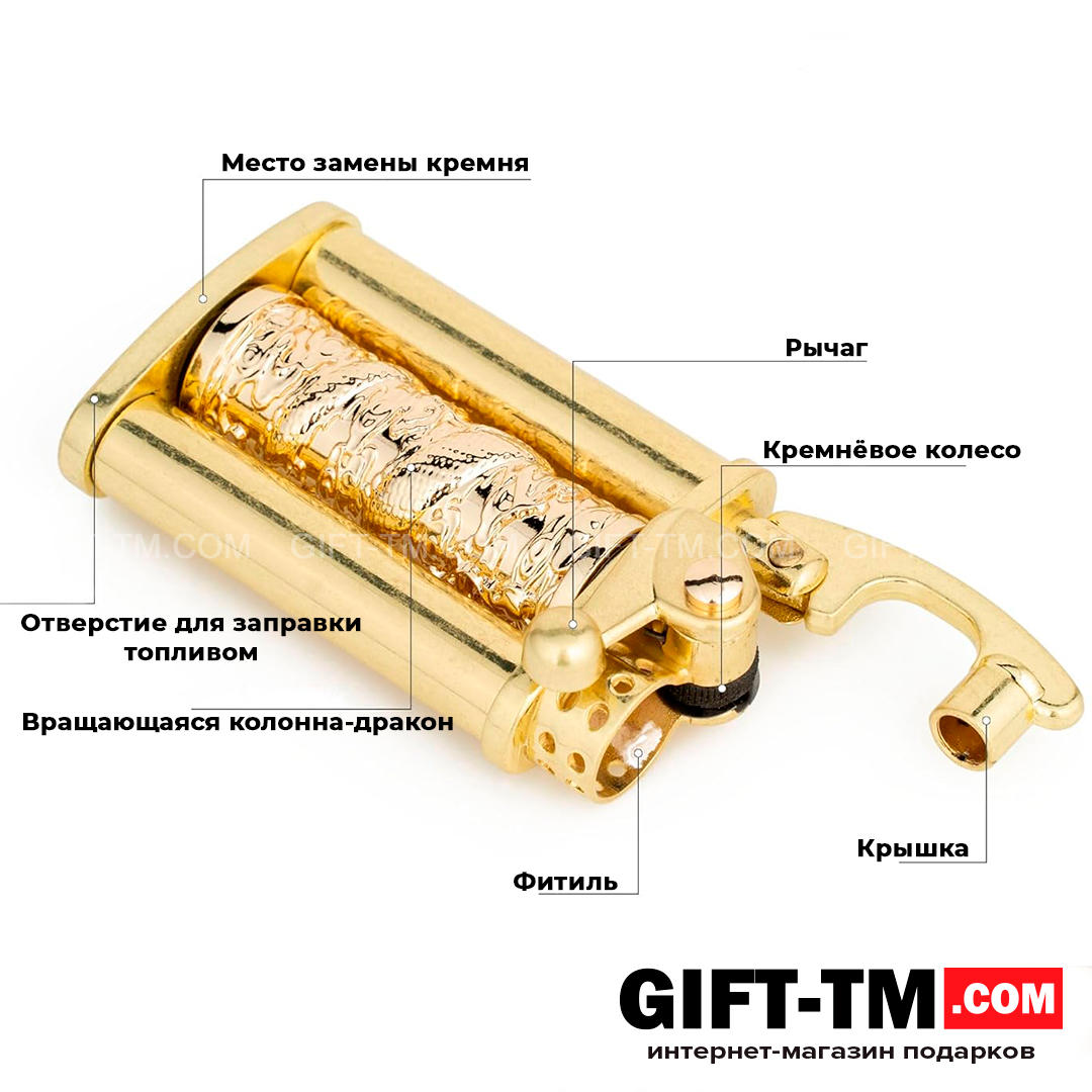 Механизм оснащён ползунковым переключателем для автоматического поджига — розжиг осуществляется легко и безопасно, без риска повредить руку. Декоративная вращающаяся колонна в виде дракона не участвует в процессе поджига, но создаёт приятный «антистресс-эффект», словно мини-спиннер — её приятно прокручивать во время ожидания или размышлений.