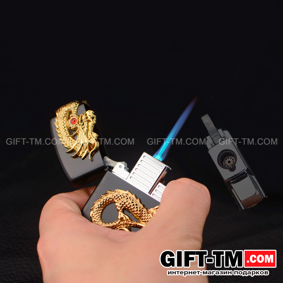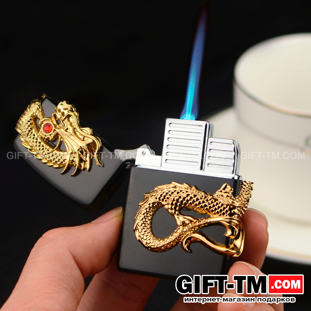 Газовая зажигалка с объёмным золотым драконом — эффектная и мощная модель с прямой турбо-струёй пламени. Благодаря технологии высоконапорного распыла огонь получается горячим, направленным и устойчивым к ветру, что делает зажигалку удобной для использования в любых условиях. Корпус выполнен из металла и полимерного композита, украшен детализированным рельефным драконом.