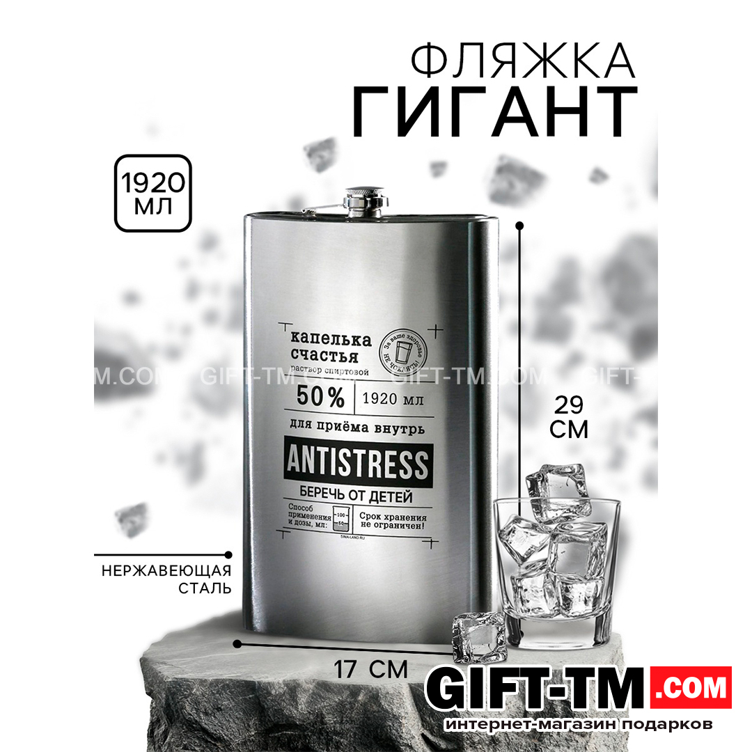 Фляжка «Антистресс», 1920 мл — эффектный аксессуар для тех, кто любит нестандартные подарки и максимальный объём. Это не просто фляжка, а настоящий акцент с юмором и характером, который точно привлечёт внимание.