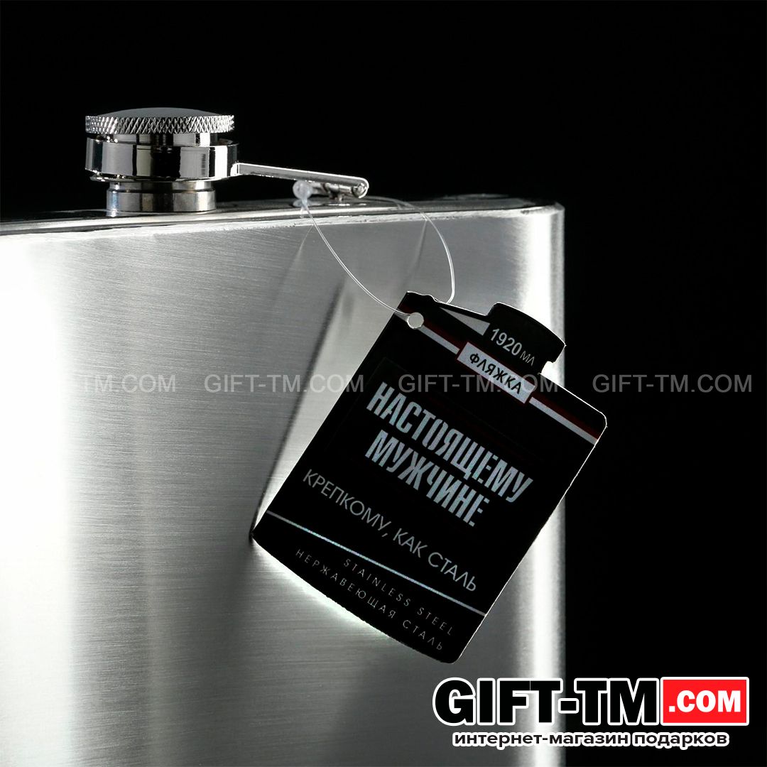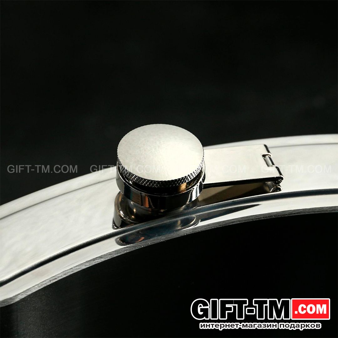 Корпус выполнен из нержавеющей стали — материал прочный, устойчивый к коррозии и не впитывающий запахи. Большой объём делает фляжку подходящей для компании, мероприятий на природе и оригинальных подарков с вау-эффектом.