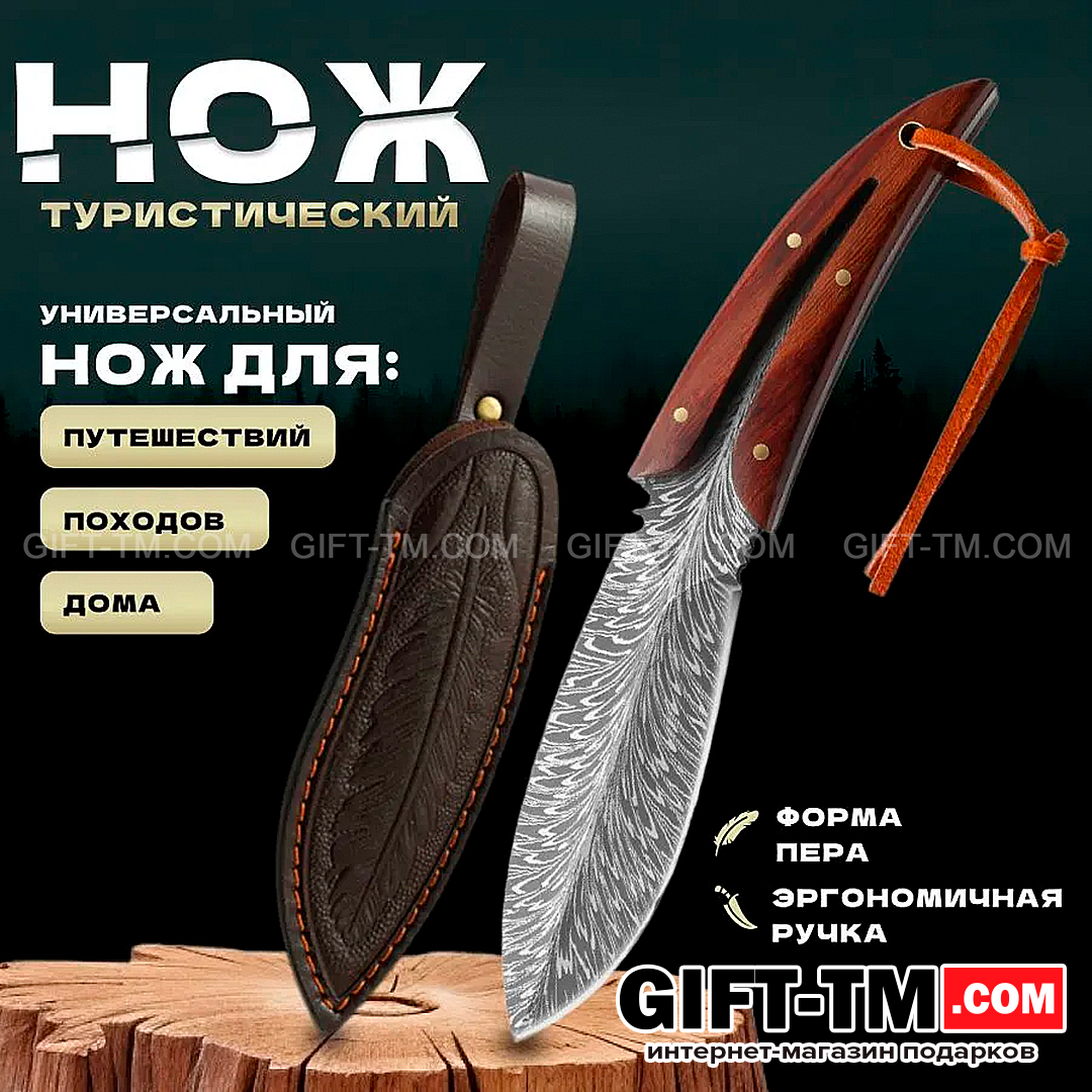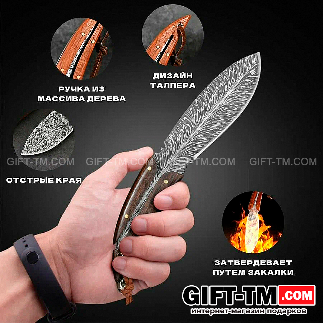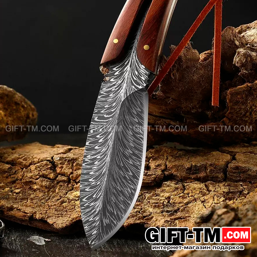 Нож «Перо» – стильный и функциональный инструмент, который станет надежным помощником как в походе, так и в быту. Его уникальный узор на клинке придаёт эффектный вид, а прочная конструкция обеспечивает долговечность.