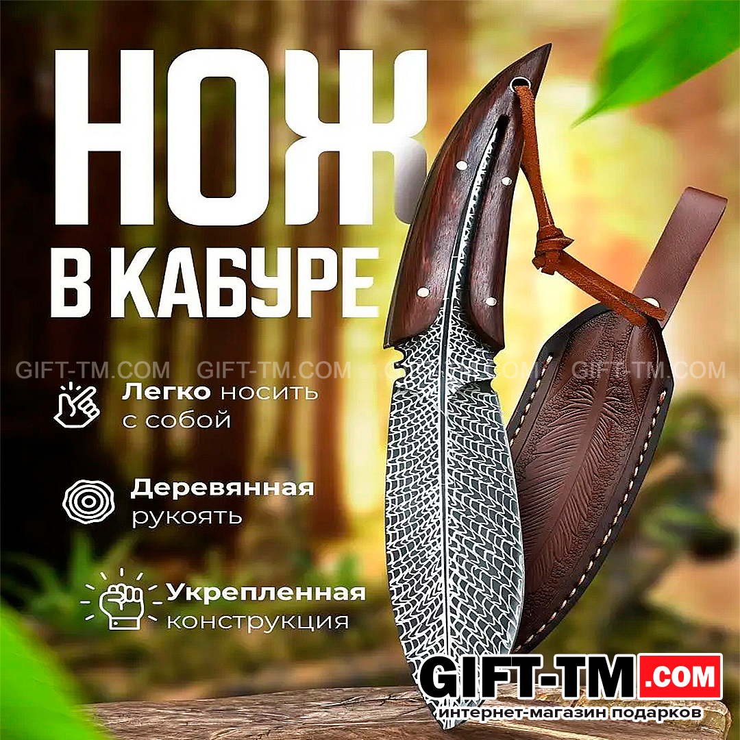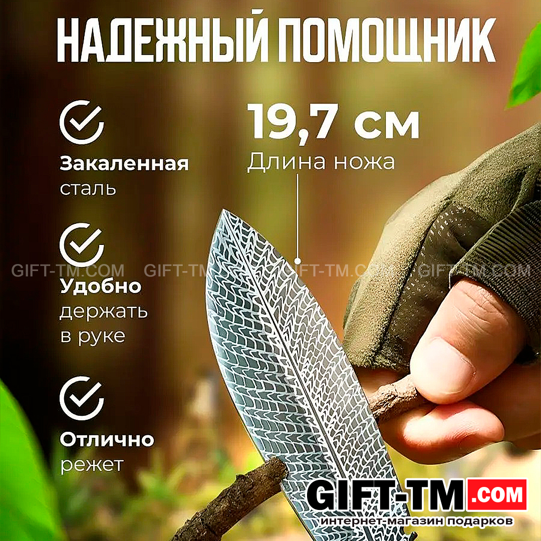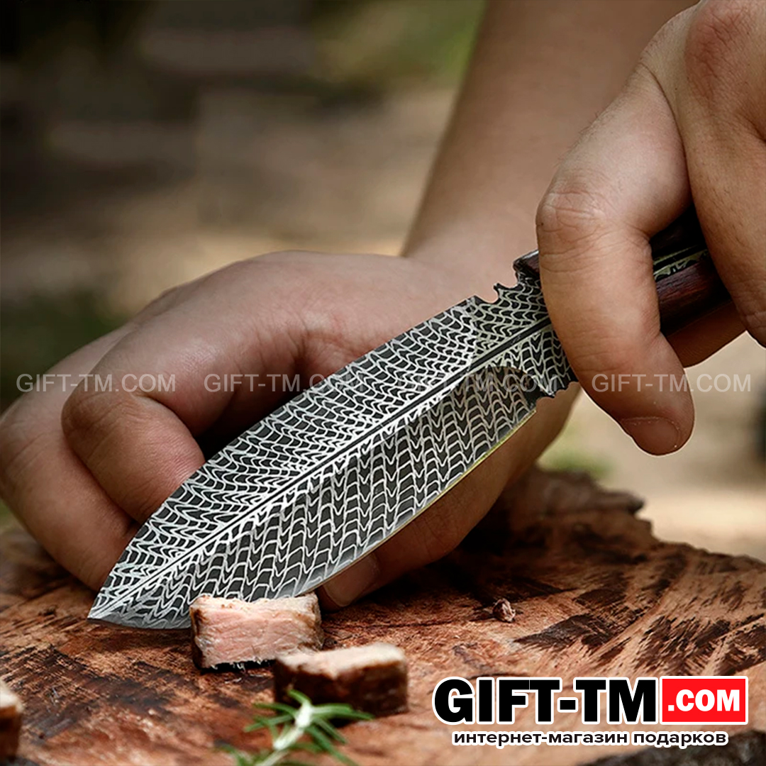 Нож «Перо» – стильный и функциональный инструмент, который станет надежным помощником как в походе, так и в быту. Его уникальный узор на клинке придаёт эффектный вид, а прочная конструкция обеспечивает долговечность.