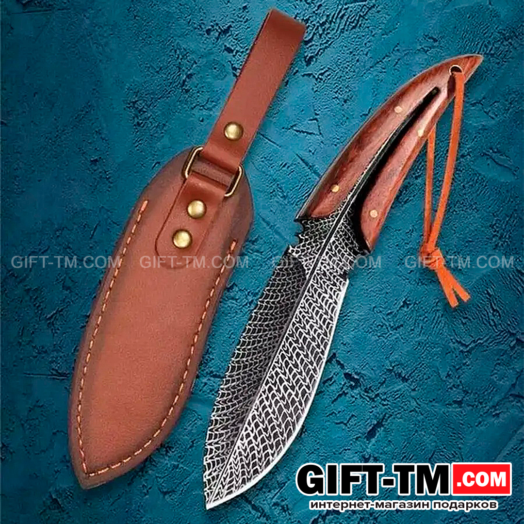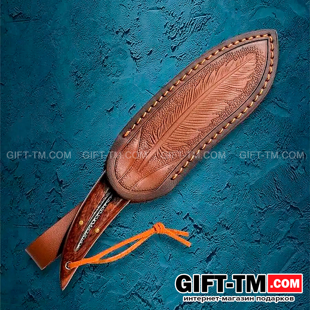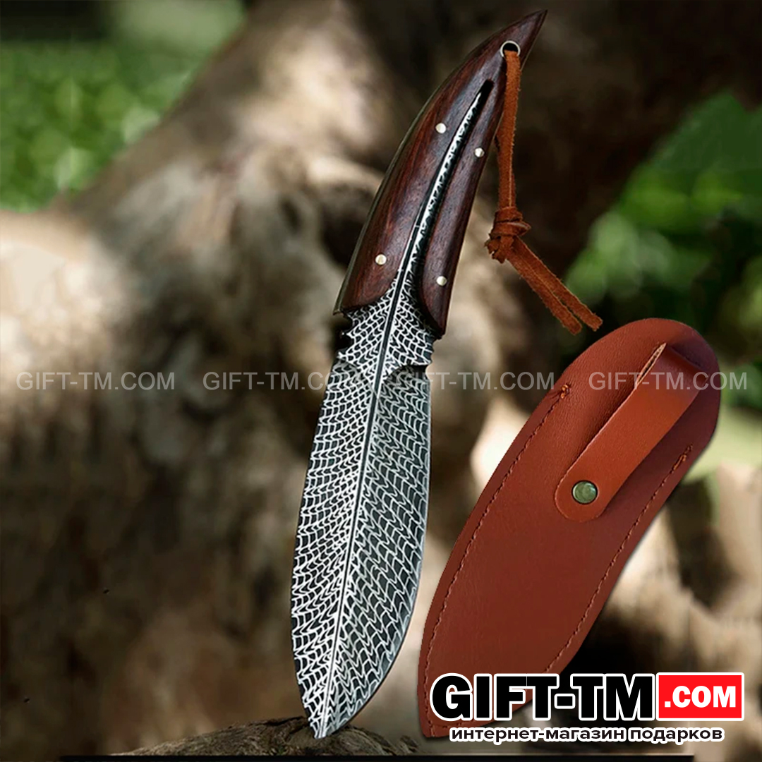 Нож для пикника «Перо» паутина + чехол из искусственной кожи