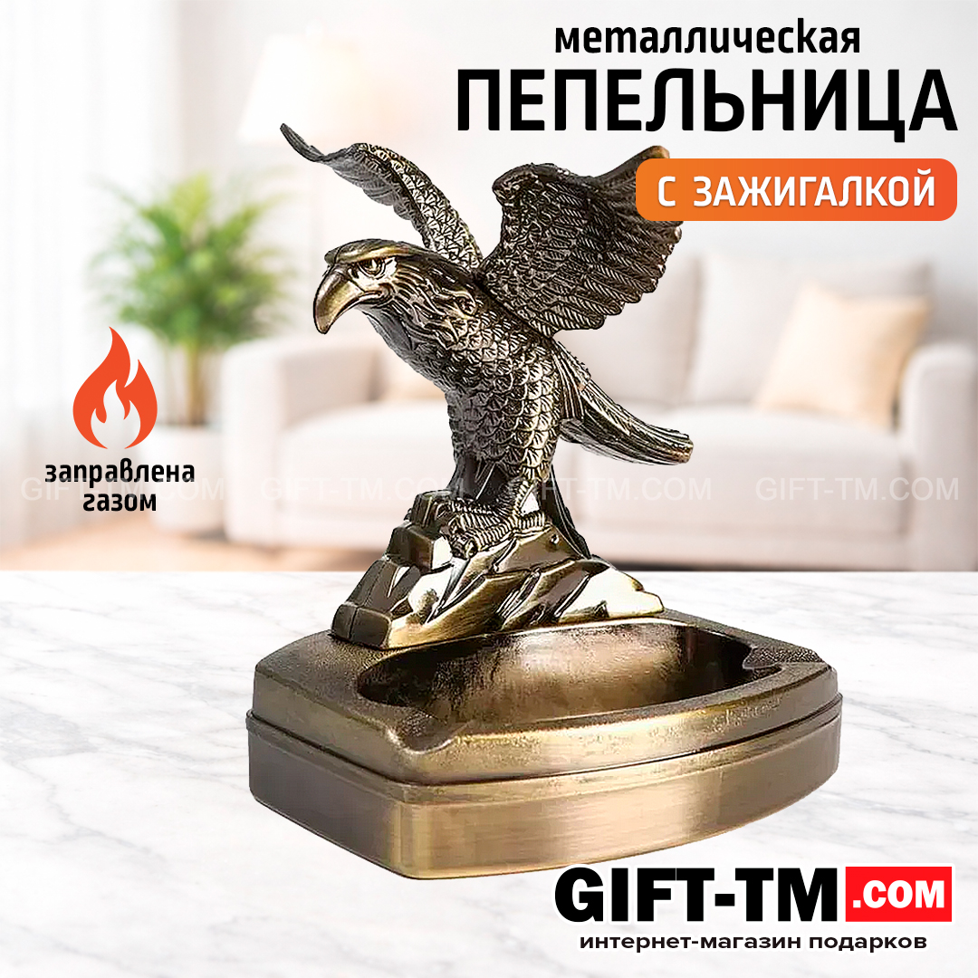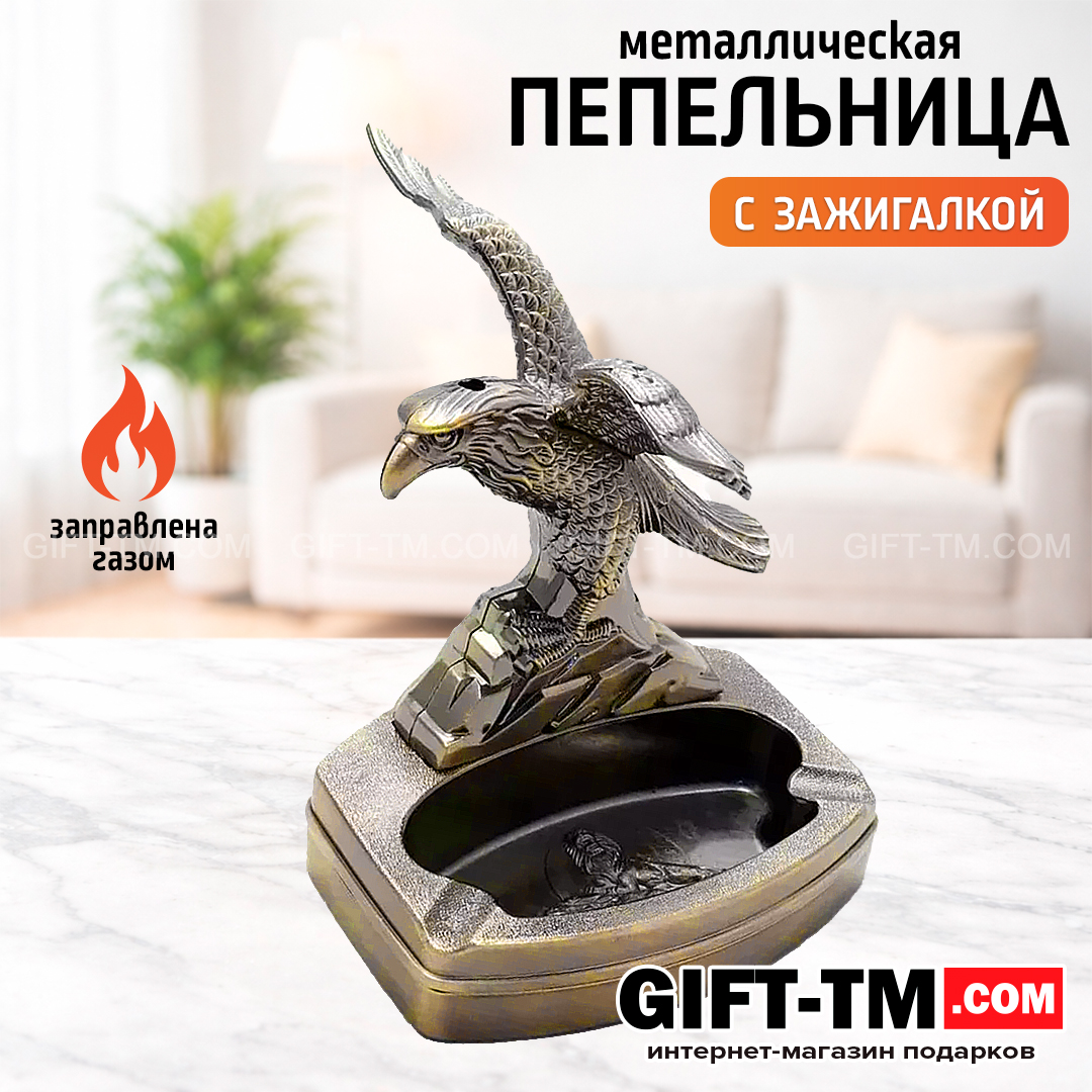 Пепельница «Орел с крыльями» с зажигалкой — выразительный аксессуар с символичным дизайном, который сочетает практичность и эффектный внешний вид. Фигура орла с расправленными крыльями символизирует силу, свободу и уверенность, делая изделие не только функциональным предметом, но и стильным элементом интерьера.