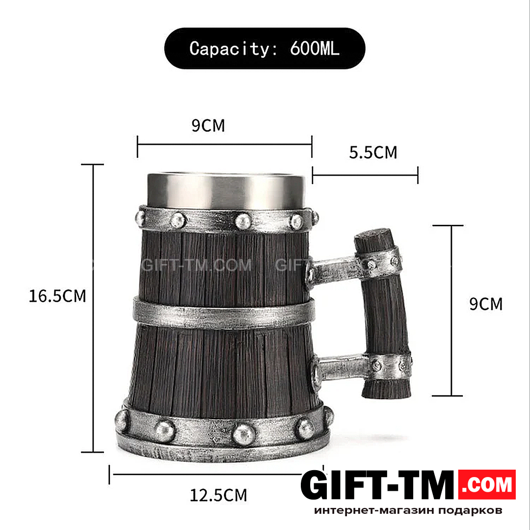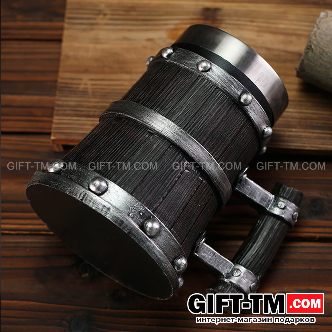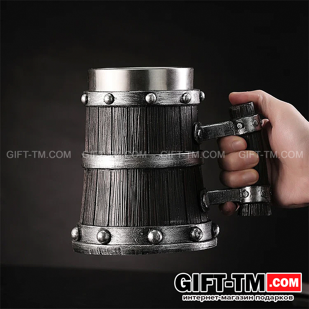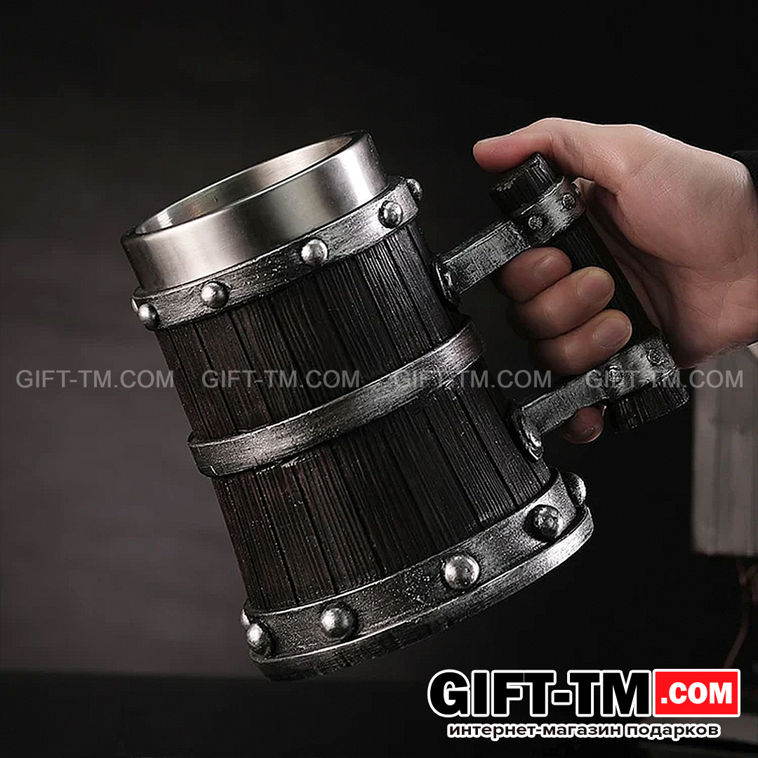 Пивная кружка «Викинг» 600 мл — это мощный и атмосферный аксессуар для настоящих ценителей оригинальной посуды. Дизайн в виде деревянной бочки с металлическими вставками вдохновлён эпохой скандинавских воинов и создаёт эффект настоящего средневекового артефакта.