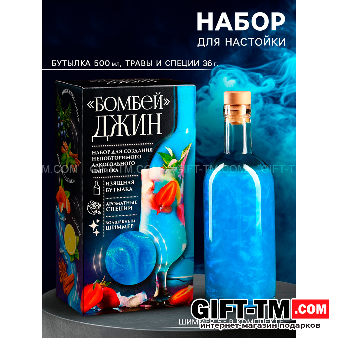 Подарочный набор для приготовления алкоголя «Джин бомбей», набор трав и специй, бутылка, шиммер