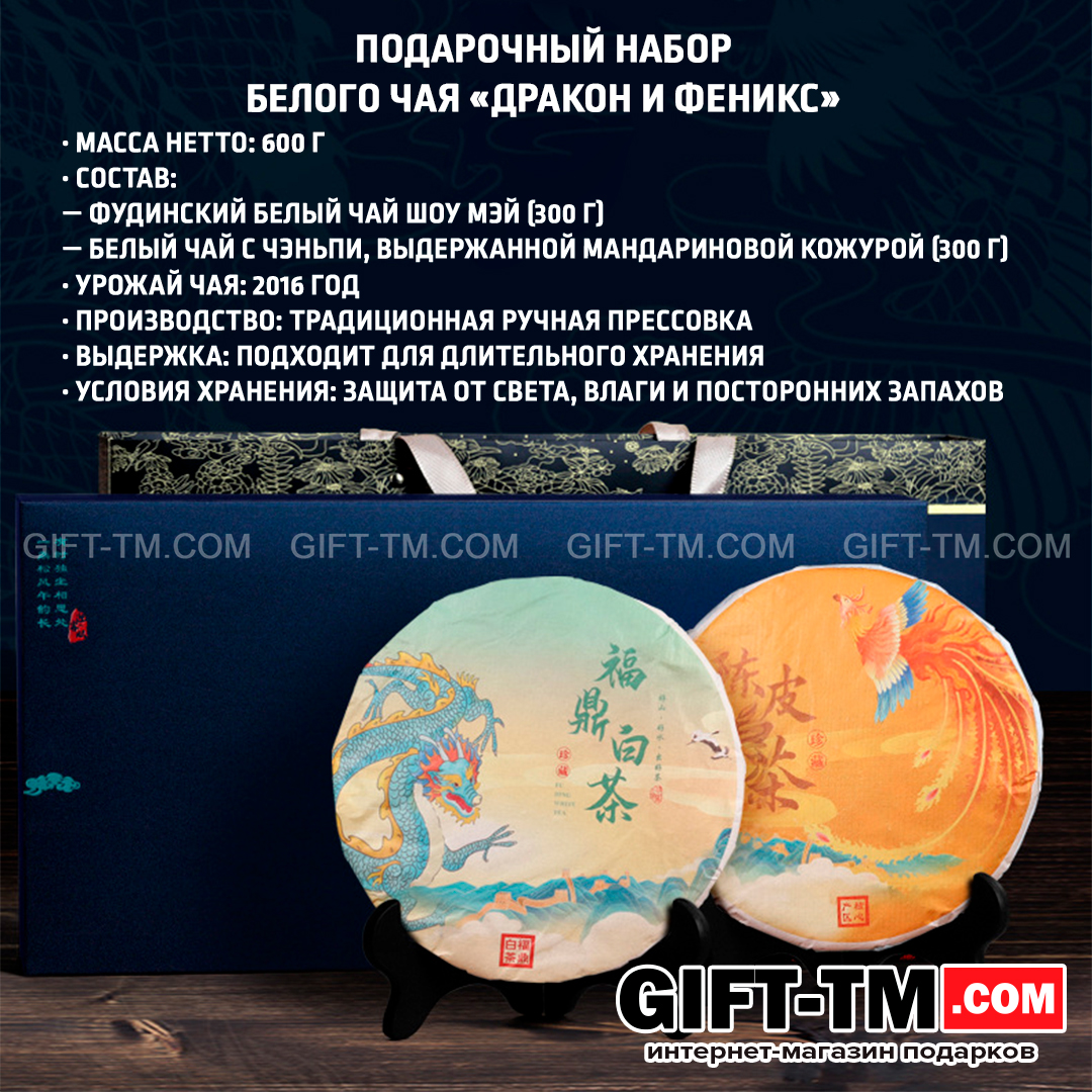 Подарочный набор элитного китайского белого чая фудин «Дракон и Феникс»