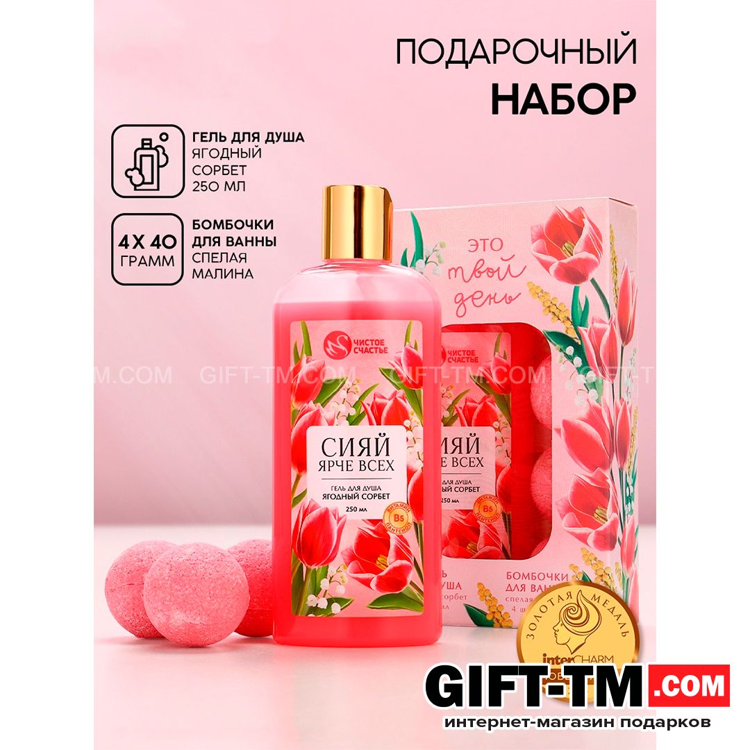 Праздничный подарочный набор для ярких эмоций и приятного ухода. Он создан, чтобы порадовать, поднять настроение и превратить водные процедуры в настоящий момент удовольствия.