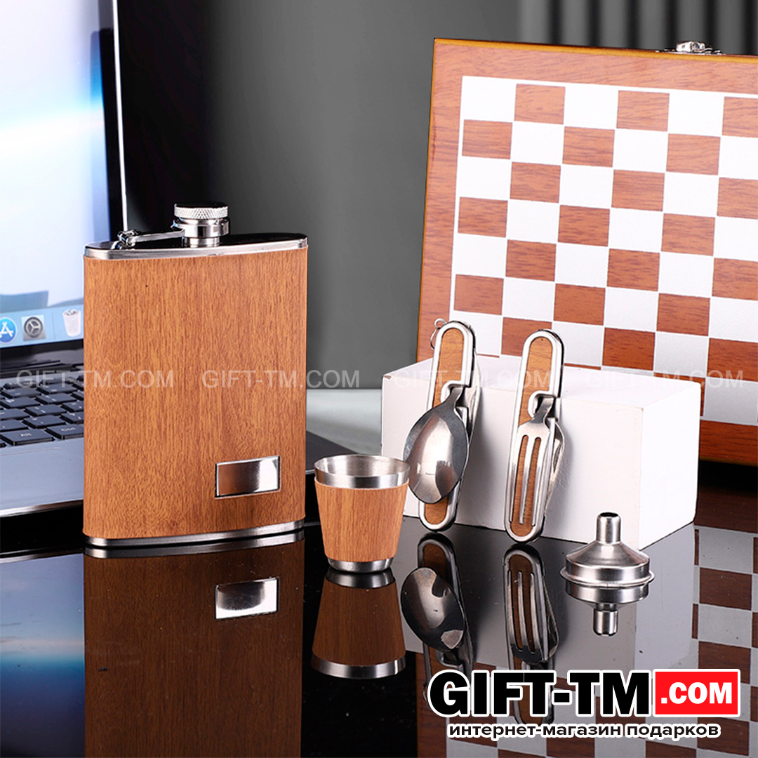 Подарочный набор «Фляжка и шахматы» ложка-вилка 6 в 1