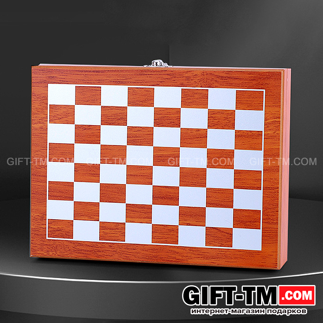 - Деревянная подарочная коробка с клетками для игры в шахматы.