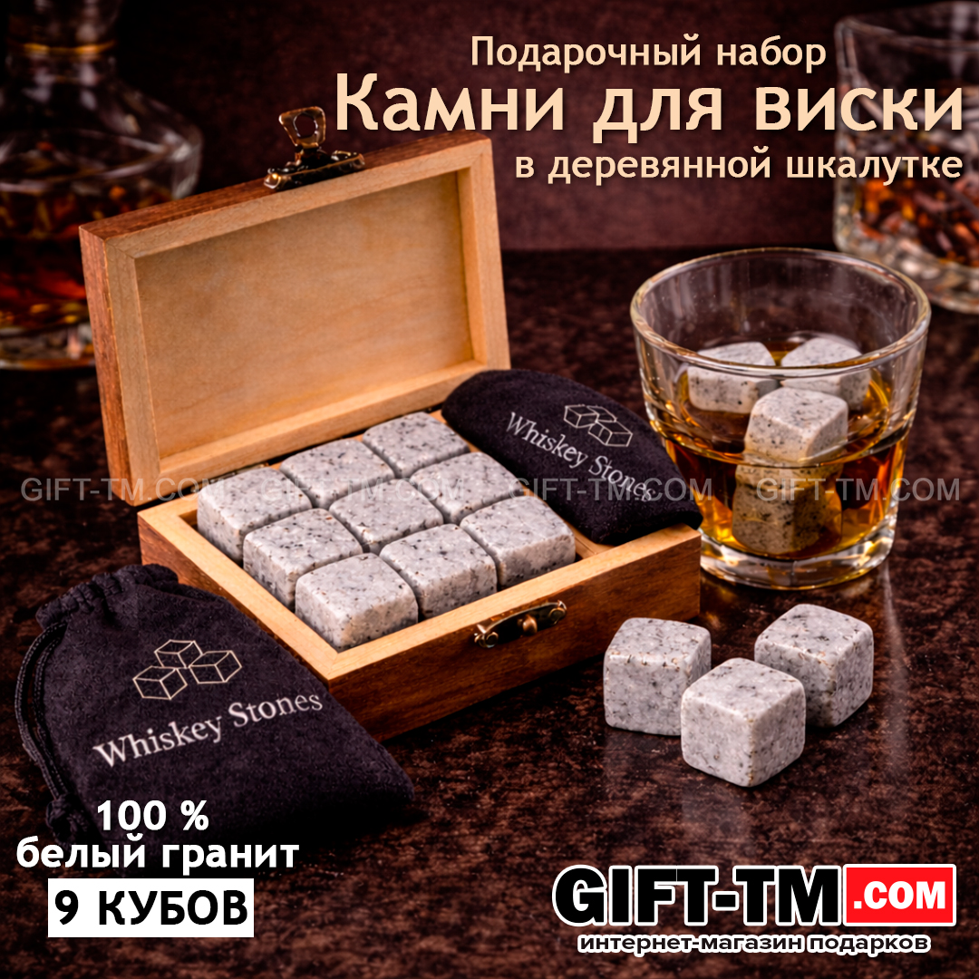 Подарочный набор «Камни для виски» из белого гранита — элегантный аксессуар для тех, кто ценит чистый вкус и эстетику подачи напитков. Натуральный белый гранит эффективно охлаждает виски, бурбон или коньяк, не разбавляя их водой и не искажая аромат.