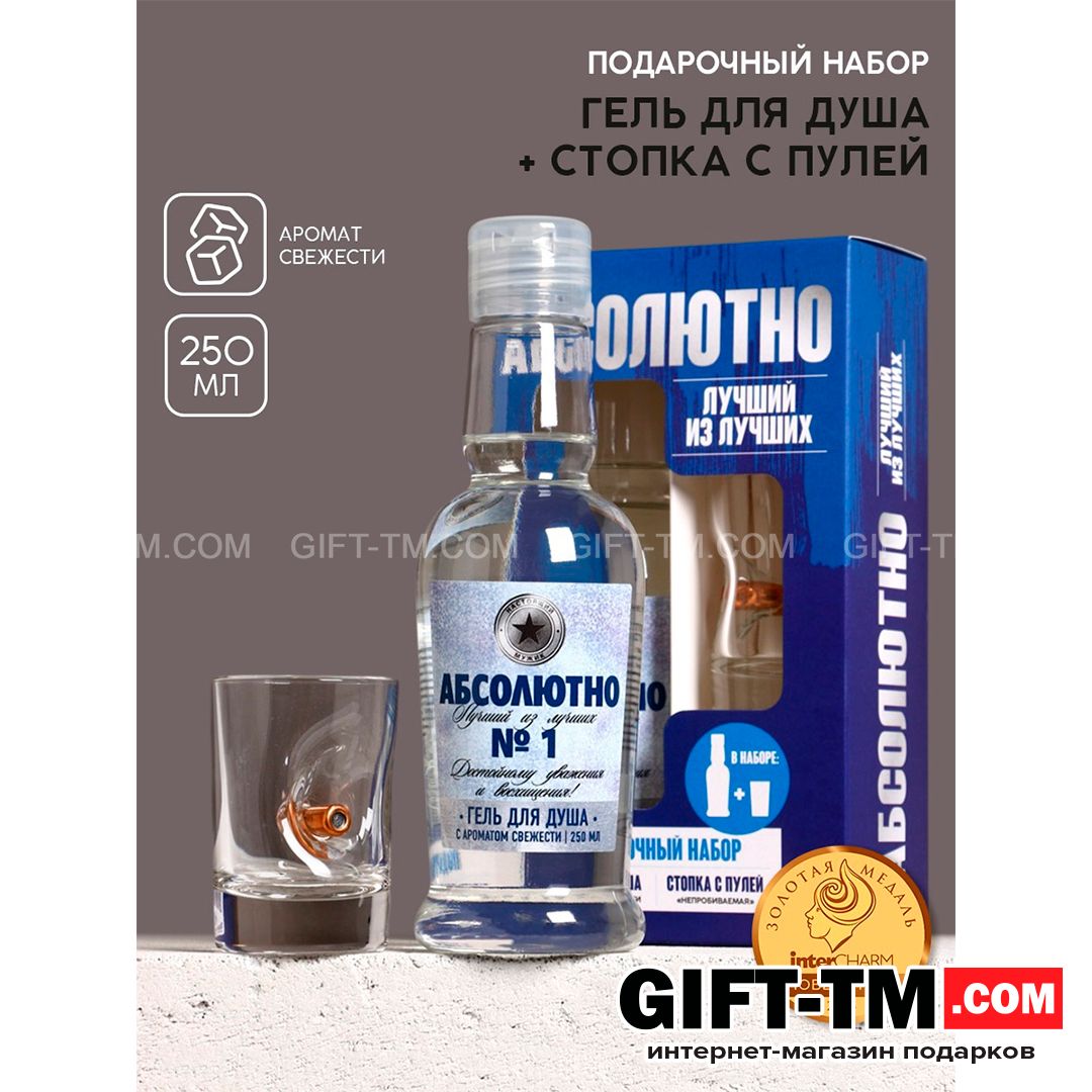 Подарочный набор косметики «Абсолютно»: гель для душа и стопка с пулей