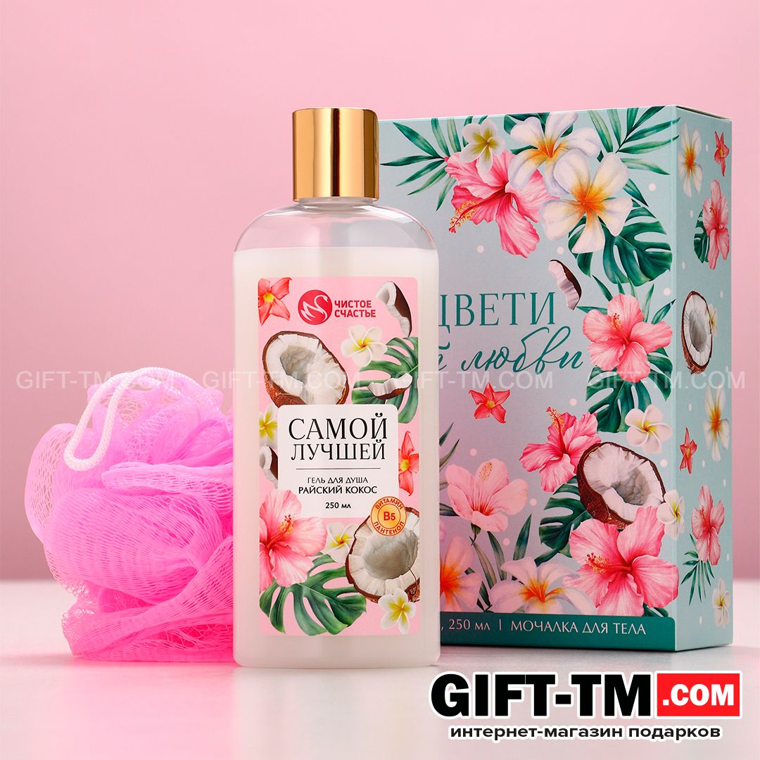 Подарочный набор косметики «Цвети от любви», гель для душа и мочалка для тела