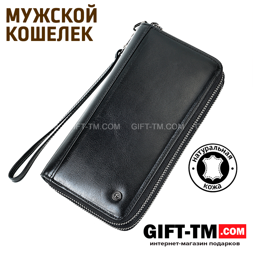 Портмоне-кошелёк с двумя застёжками — практичное и вместительное решение для повседневного использования. Модель выполнена из натуральной кожи чёрного цвета и сочетает в себе функциональность кошелька и удобство хранения телефона.