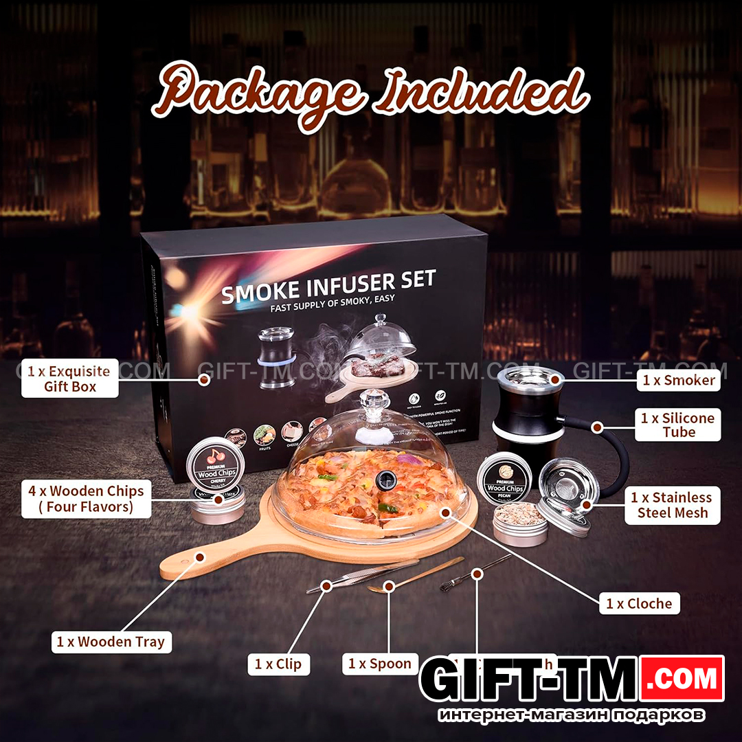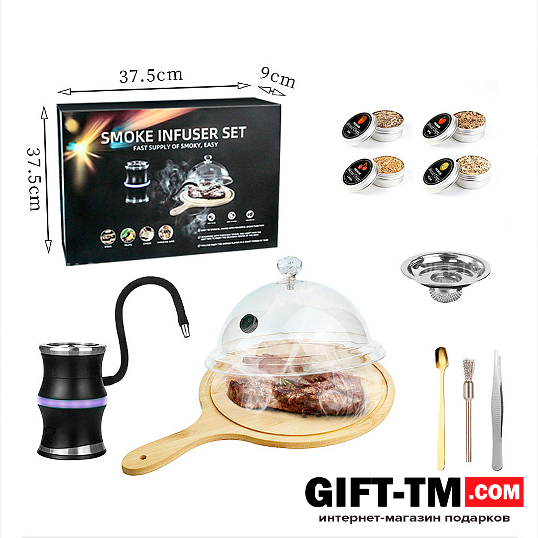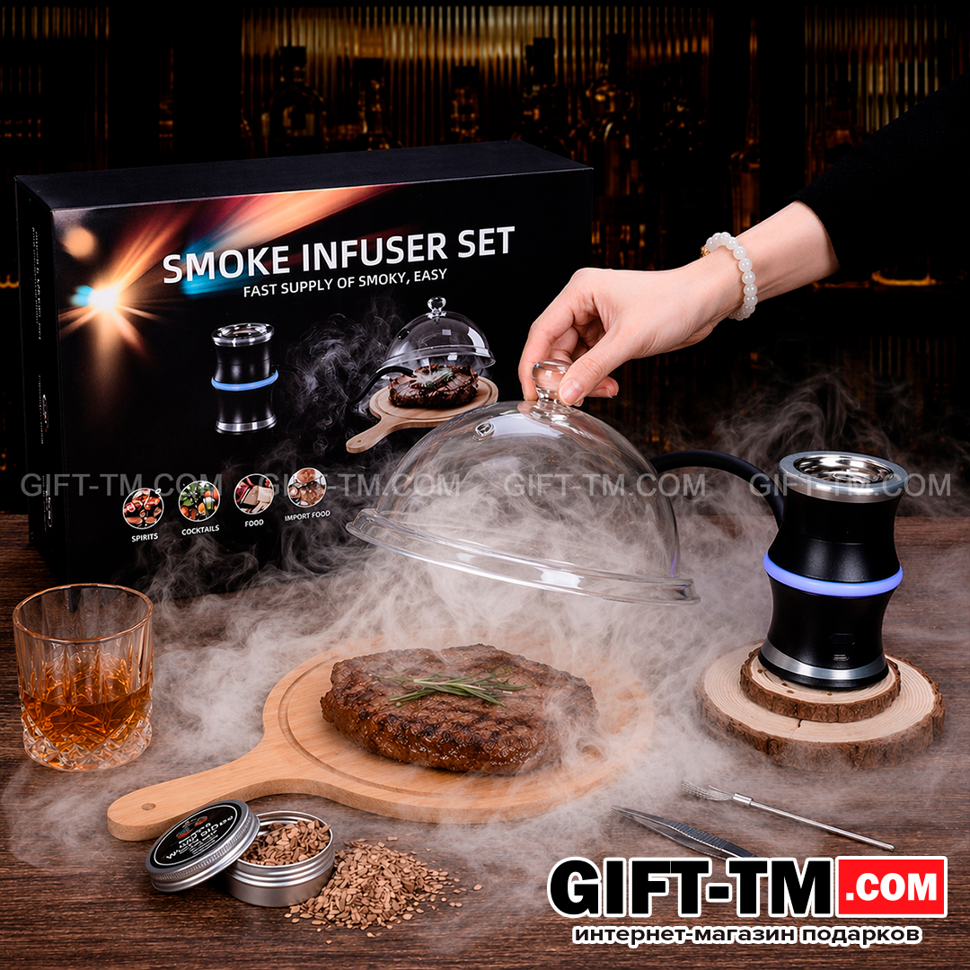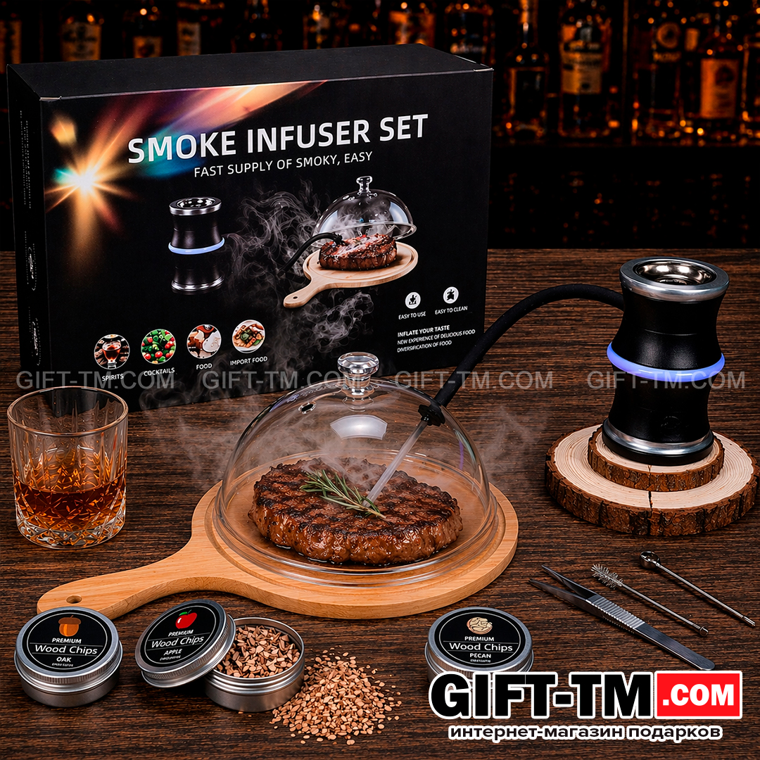 Набор отличается простотой использования и подойдёт как новичкам, так и тем, кто уже знаком с техникой копчения. Компактное устройство генерирует холодный дым, который придаёт продуктам глубокий аромат, не изменяя их температуру. Это особенно важно для напитков и деликатных блюд.