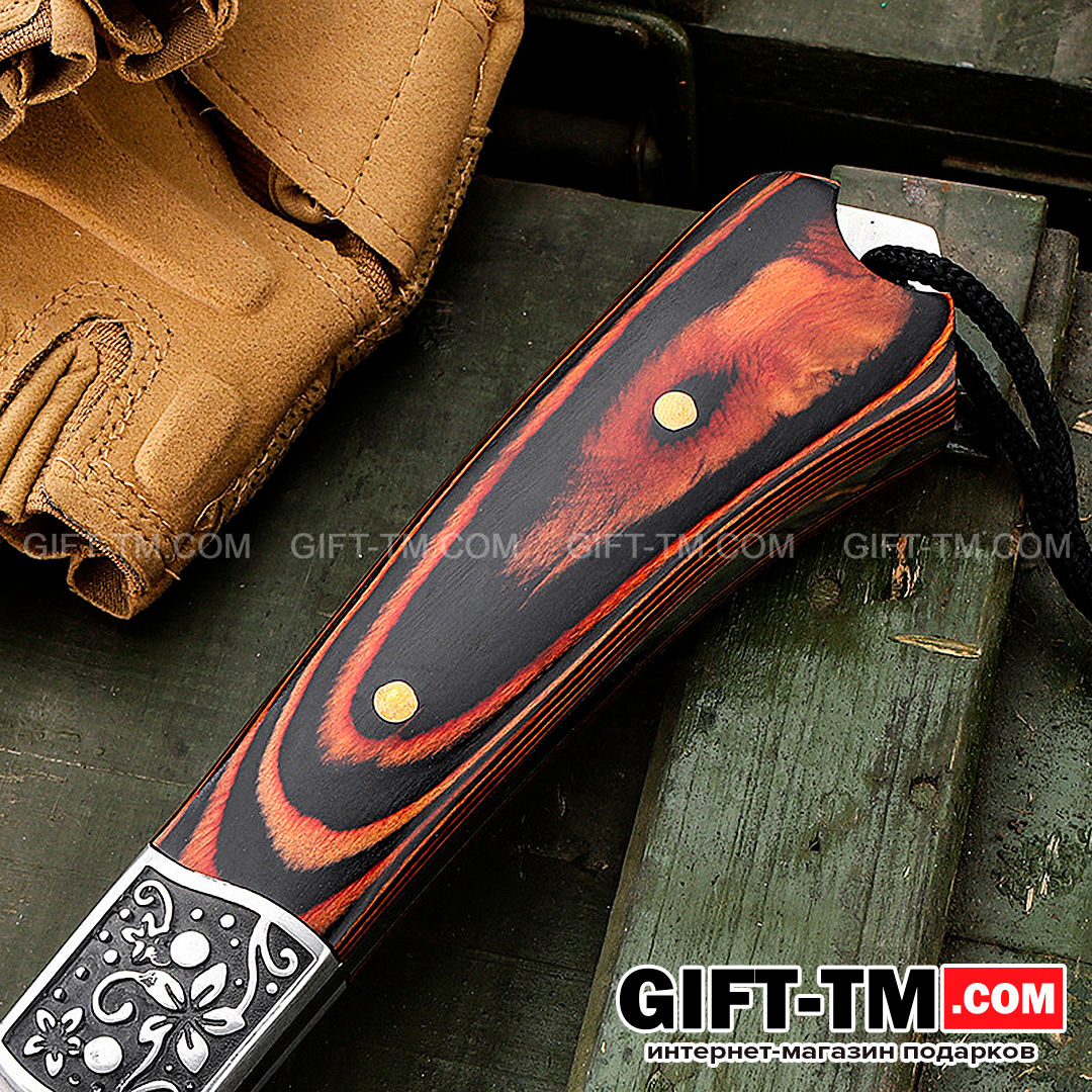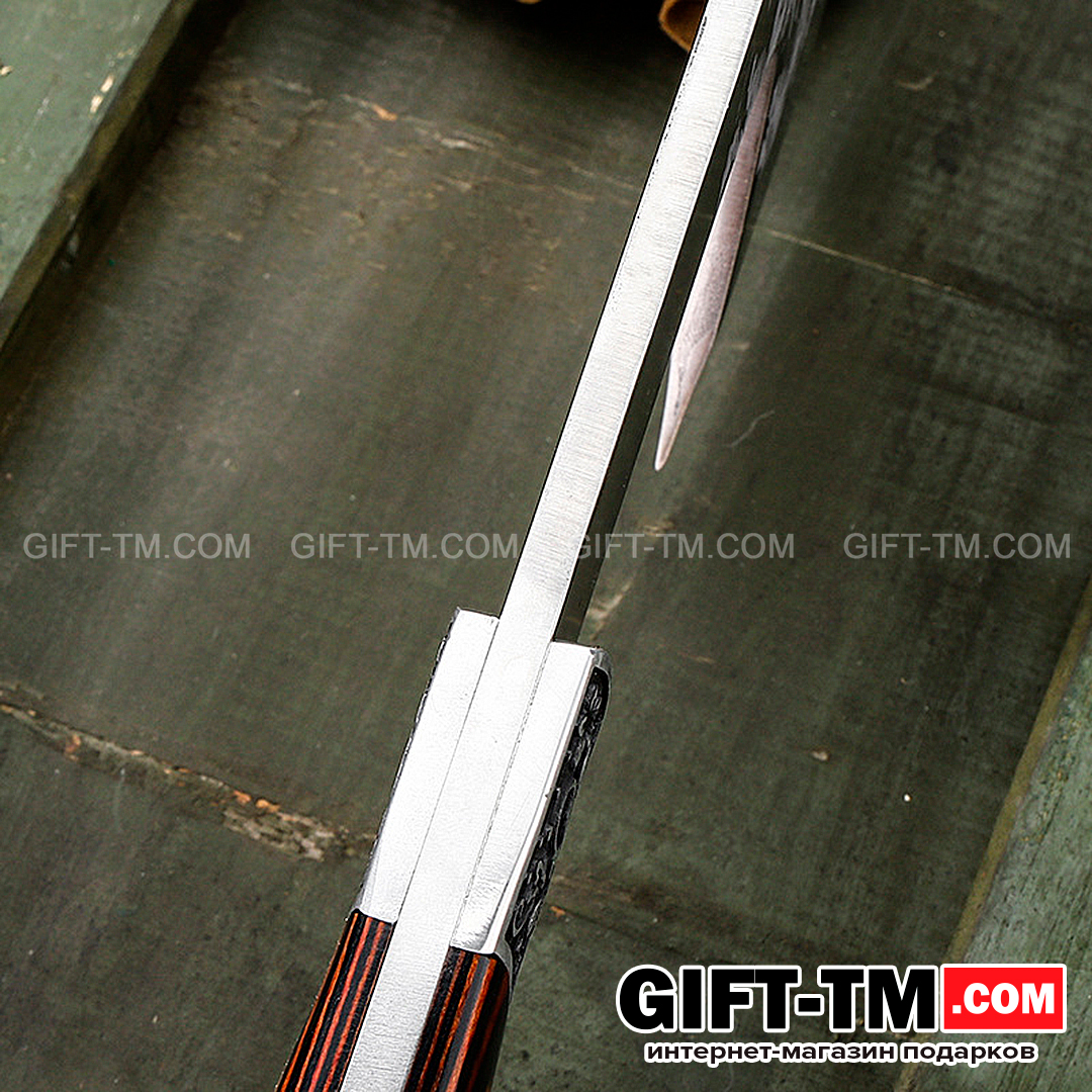 - Удобная рукоятка из красного дерева с декоративными вставками