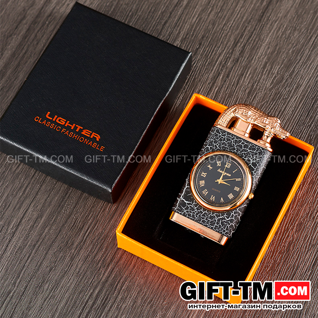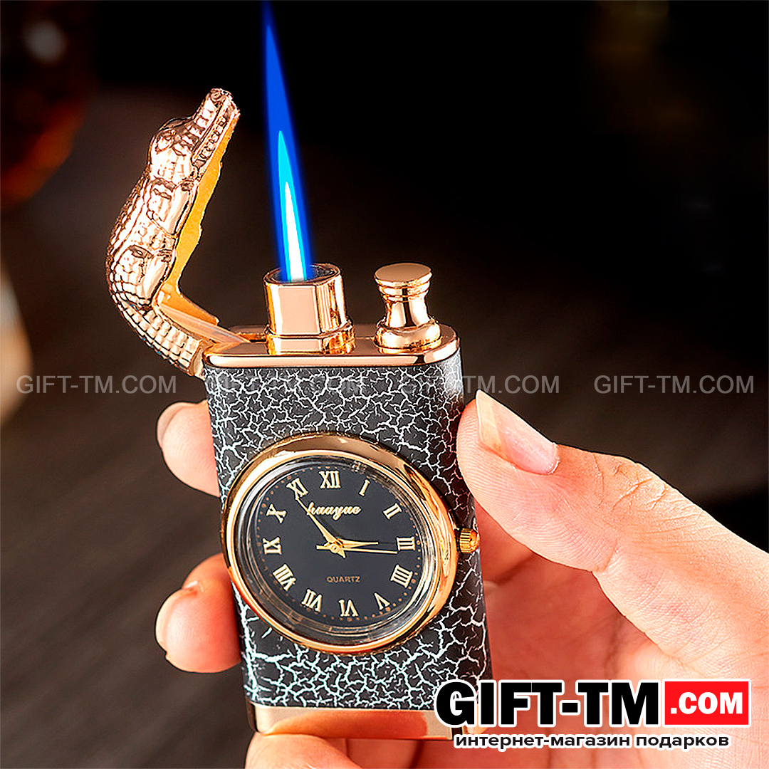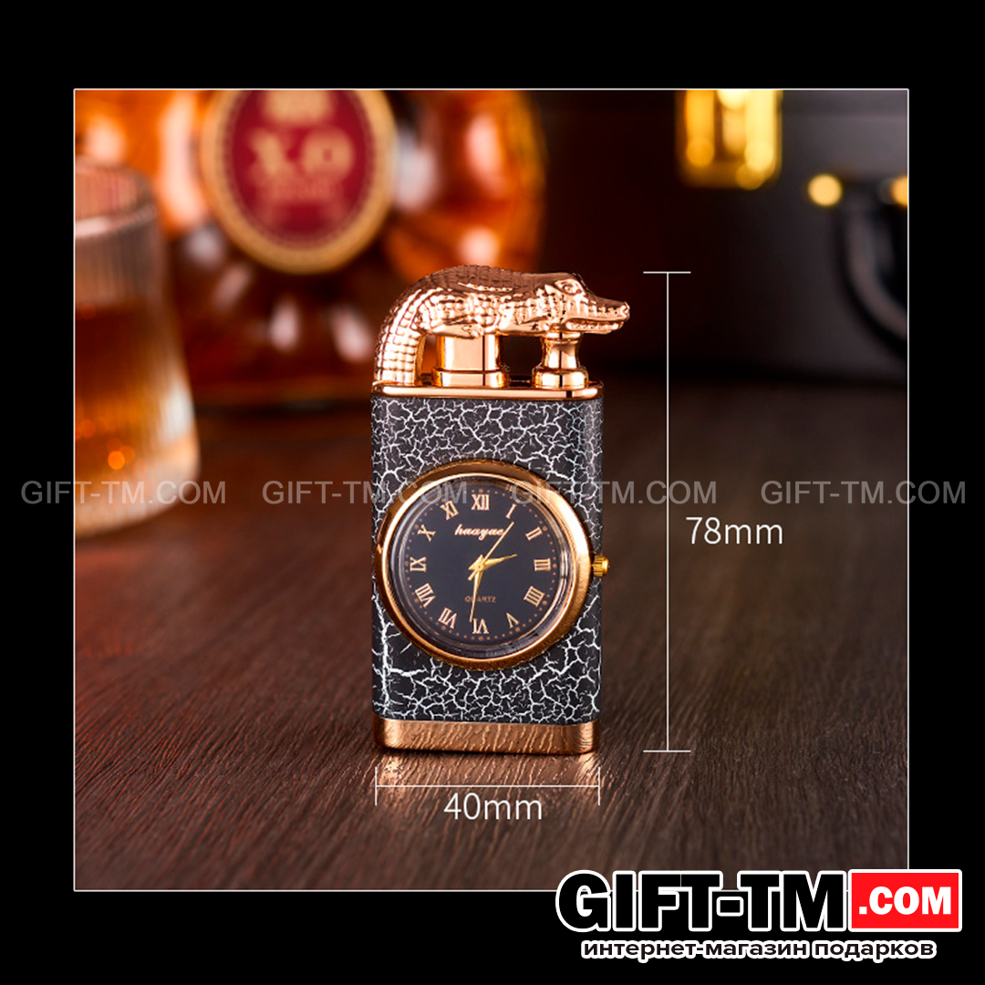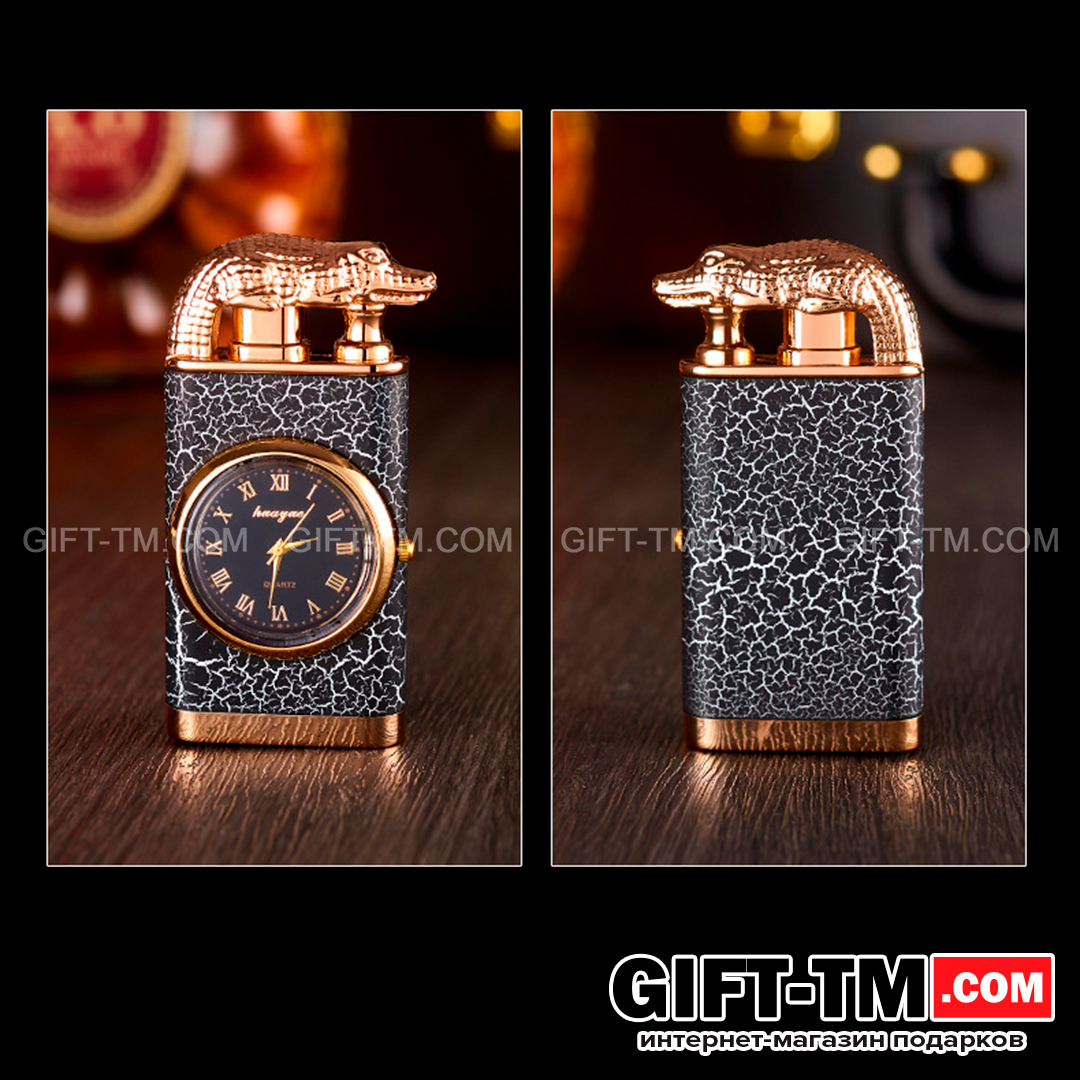 Зажигалка газовая с часами «Крокодил» двойной огонь