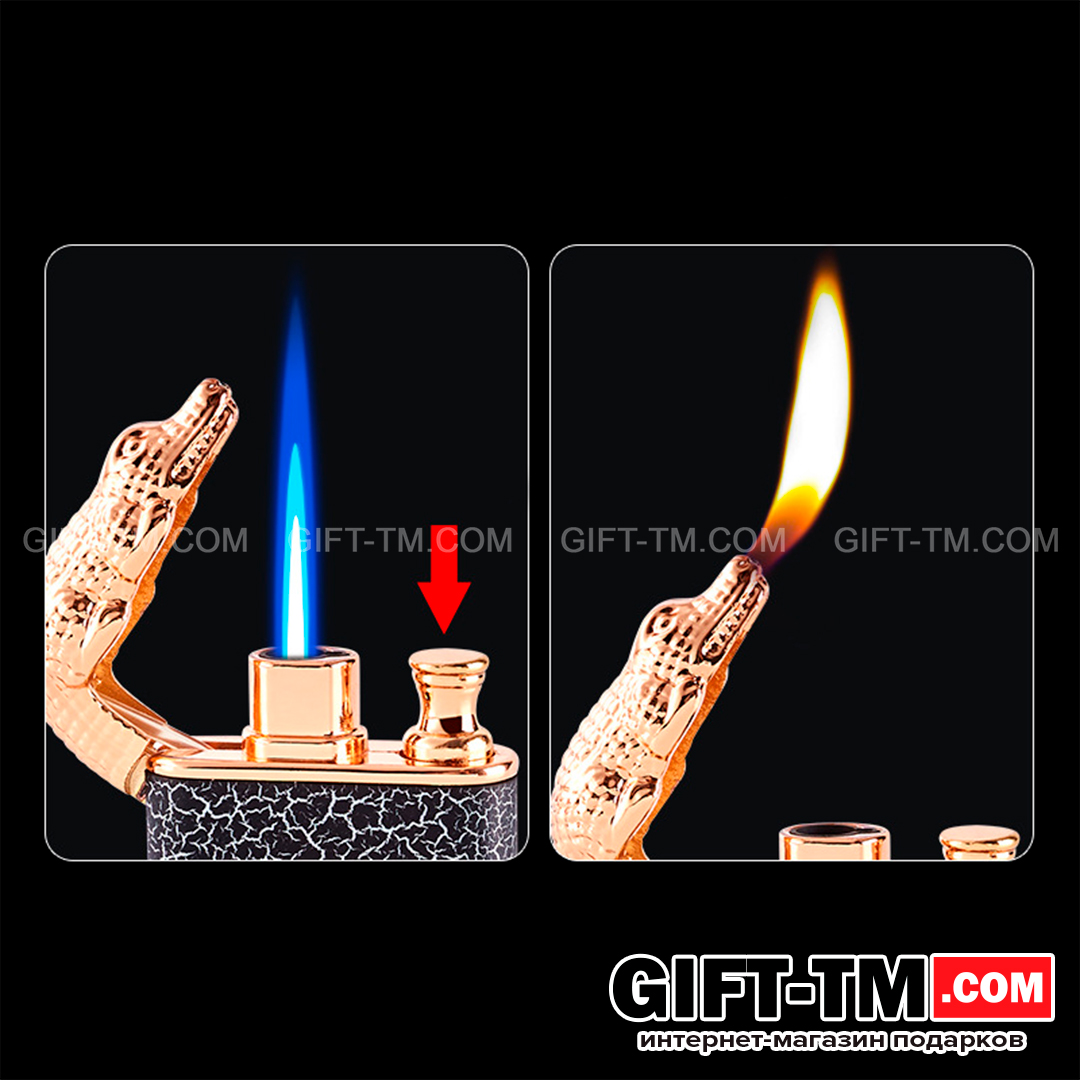 Газовая зажигалка с часами «Крокодил» двойной огонь — это стильный и функциональный аксессуар с эффектным дизайном, который сразу привлекает внимание. Фигурная крышка в виде головы крокодила придаёт изделию выразительный внешний вид, а встроенные часы на корпусе добавляют практичности и делают зажигалку ещё более оригинальной.